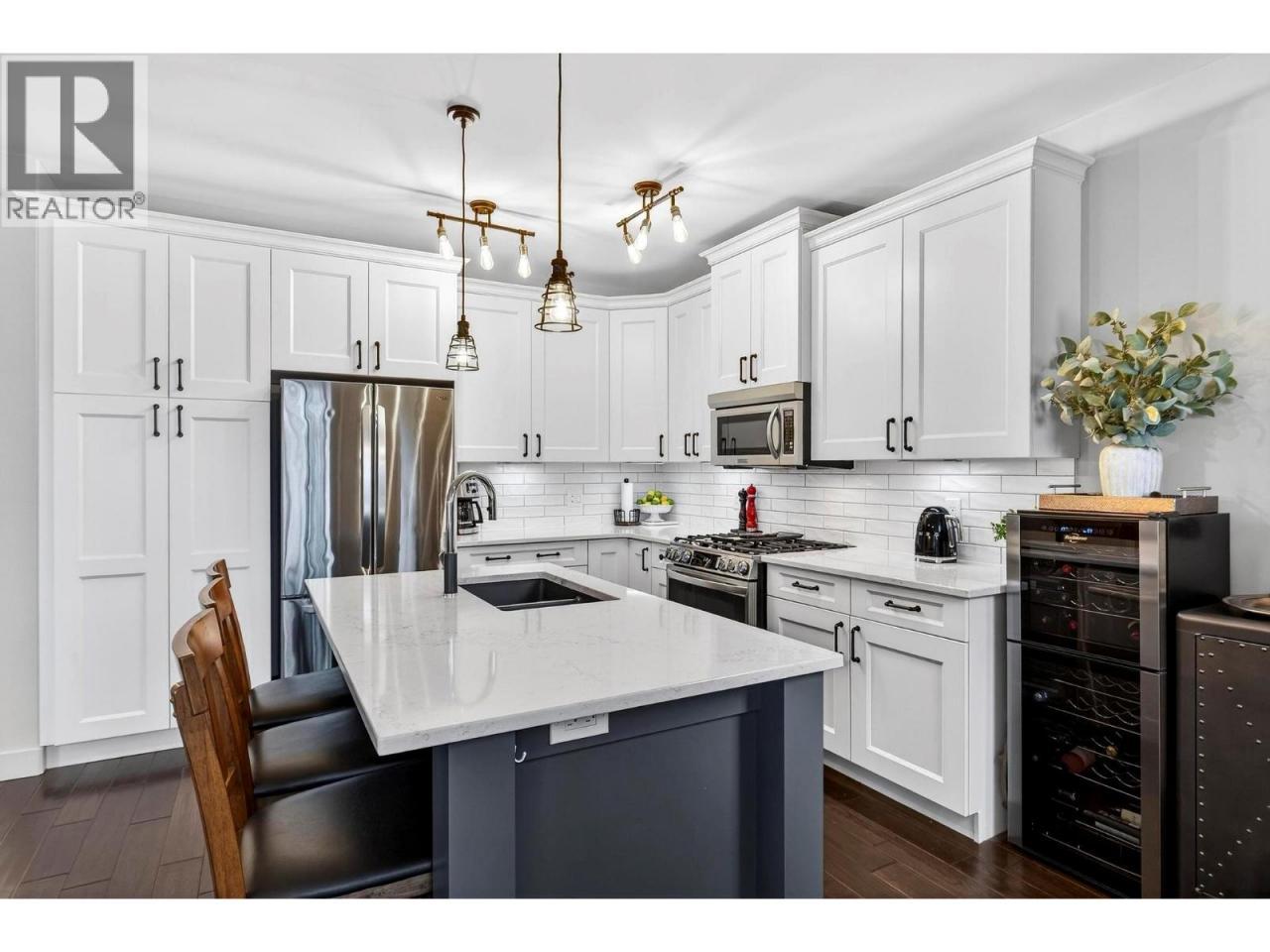 This pristine, top-floor two-bedroom, two-bathroom residence is a beautifully maintained home that reflects meticulous care throughout. Featuring lovely lake views and a bright, open-concept layout, the unit offers both comfort and style in a serene setting. The updated kitchen features white quartz countertops, a Blanco sink, newer appliances and engineered hardwood flooring that flows seamlessly through the main living areas. Thoughtful upgrades include Hunter Douglas blinds and tastefully updated bathrooms with quartz countertops, while the spare bathroom is enhanced with a newly finished ceiling, adding to the home’s polished presentation. The spacious primary bedroom offers a walk-in closet and a spa-inspired ensuite complete with a rain shower—creating a relaxing private retreat. Every detail of this home has been carefully maintained, making it truly move-in ready. Set within Barona Beach, one of the Okanagan’s most sought-after waterfront resort communities, owners enjoy over 600 feet of private sandy beach and an exceptional collection of amenities, including a pool and hot tub, fitness centre, events room, movie theatre, beauty salon, dog park, and community garden. With the flexibility of short-term rentals, this property is ideal as a full-time residence, vacation escape, or income-producing investment—offering resort-style living at its finest. (id:6769)