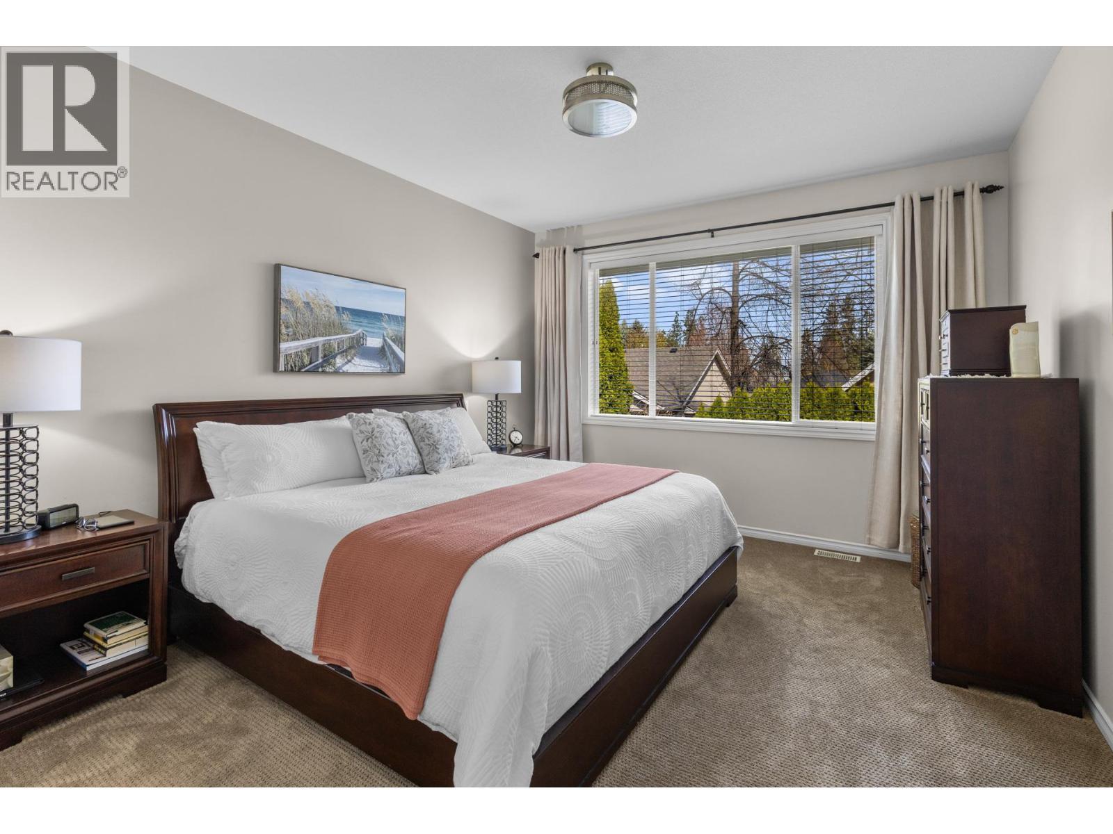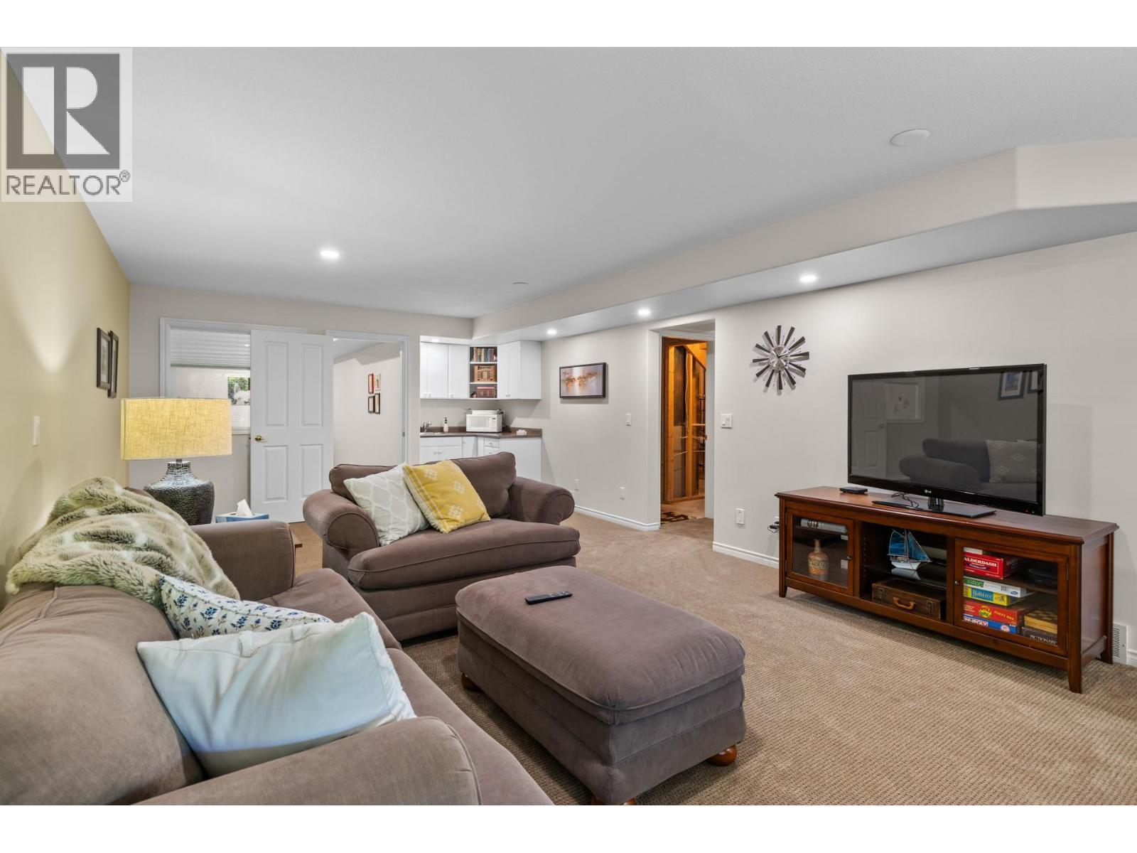 Beautiful Walkout Rancher in the Gallaghers Canyon Golf Community. From the moment you step inside, you’ll be captivated by the grand interior, featuring gleaming hardwood floors, soaring ceilings and large picture windows. The updated kitchen boasts stylish two-tone cabinetry, stainless steel appliances, a functional layout and a striking 3-sided gas fireplace. The living room is a sophisticated retreat, perfect for unwinding after a round of golf or hosting friends and family. The primary suite is complete with a spa-inspired ensuite, a massive walk-in tiled shower, and a generous walk-in closet. Also on the main level is a bright second bedroom and a convenient laundry room. Downstairs, the fully finished walkout lower level offers suite potential with a separate entrance, two additional bedrooms, a den/media room, a spacious family room, and a summer kitchen—ideal for guests or extended family. The outdoor living space is nothing short of spectacular. At the front, a large courtyard sets the tone for relaxed mornings & evening gatherings, while a tranquil water feature with a stream and pond adds to the peaceful ambiance. The backyard offers a lush greenspace, covered patio, and ample room to enjoy Okanagan’s beautiful seasons. Additional upgrades include a new exposed aggregate driveway, new asphalt roof, and a recently replaced hot water tank. Enjoy top-tier amenities including an indoor pool, whirlpool, fitness center, sports court, games room, club rooms, and library. (id:6769)