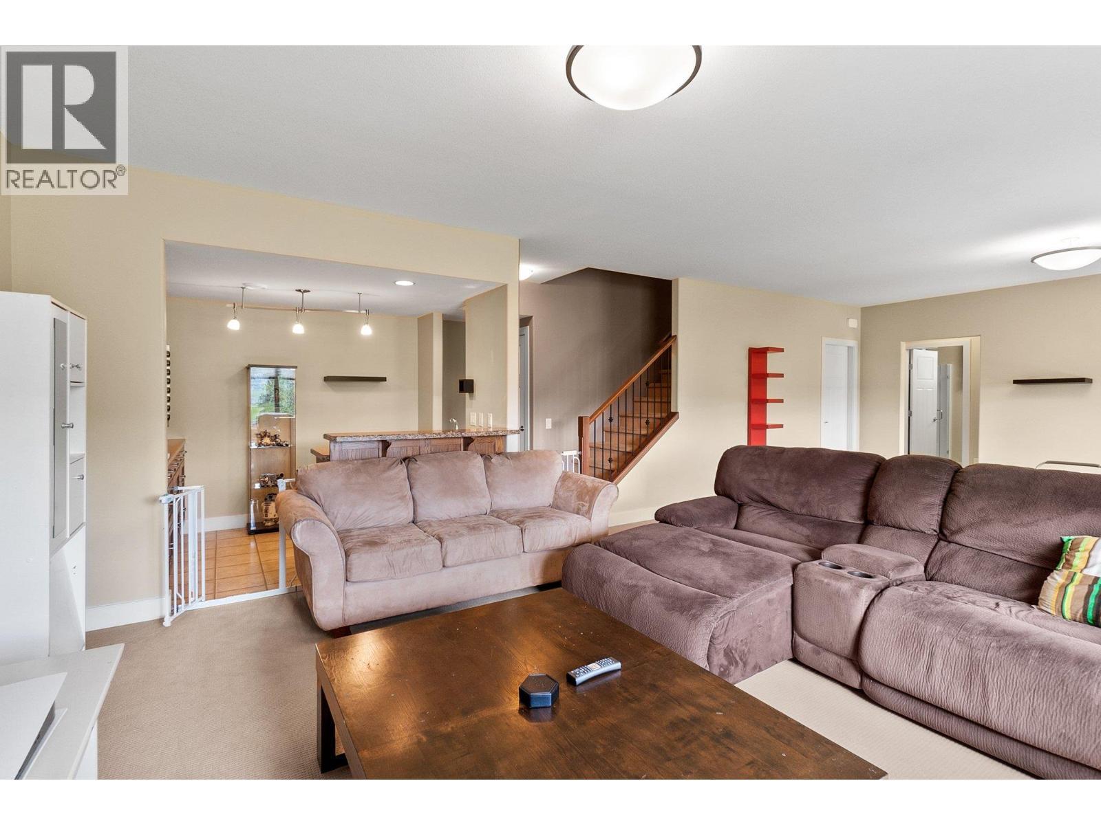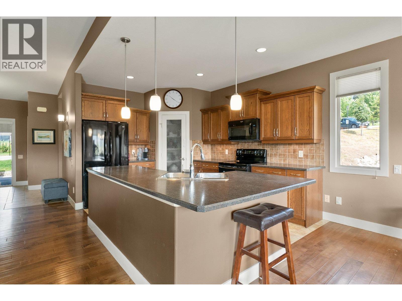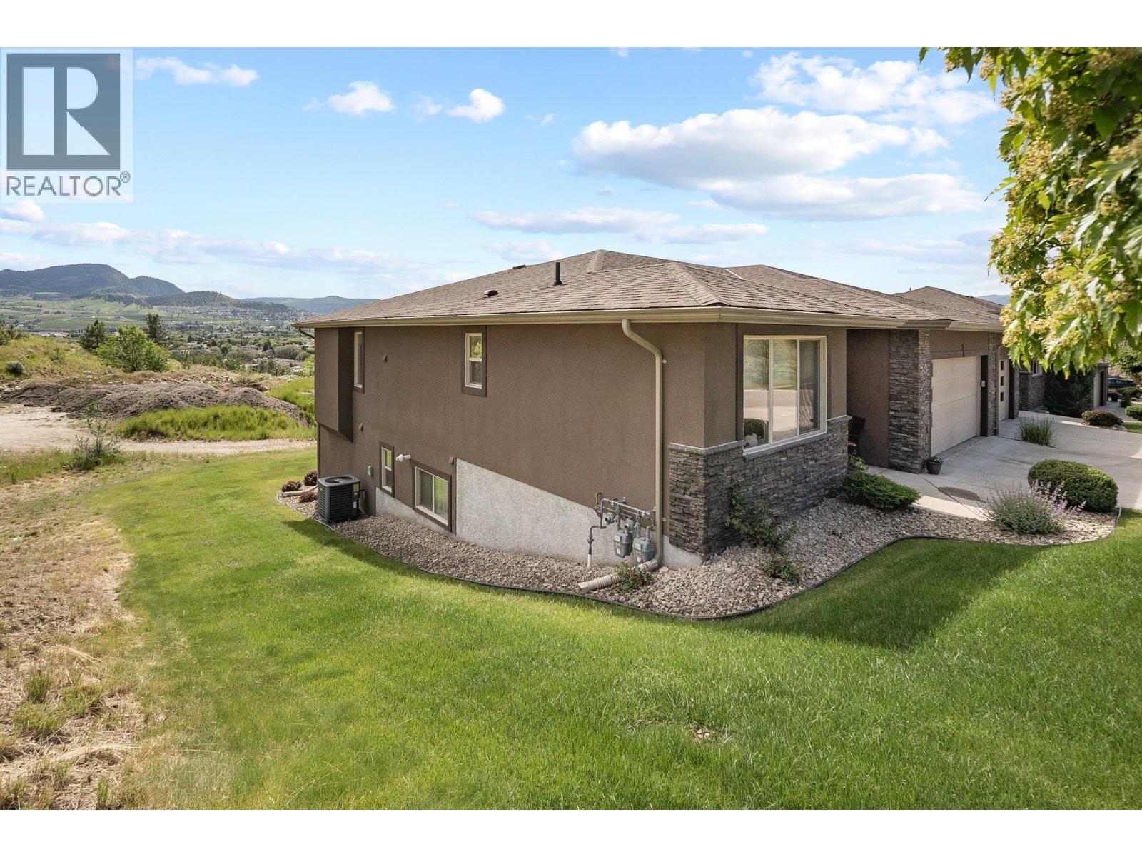 Discover this exceptional 4-bedroom townhome, designed to offer the comfort and privacy of a single family home. Tucked away at the end of the complex, this prime location ensures unmatched tranquility and a generous yard perfect for outdoor living. Enjoy breathtaking mountain and valley vistas from your expansive deck or enjoy quiet moments on the patio below. Step out to the Rail Trail for a scenic 15-minute bike ride to the beach—or venture further to Vernon for an adventurous day out. Constructed in 2010, this walk-out rancher impresses with elegant hardwood floors, two cozy gas fireplaces, and a spacious double garage with ample driveway parking for guests. The main floor welcomes you with a bright, open-concept kitchen, dining, and living area—ideal for entertaining or relaxing at home. Retreat to the luxurious primary suite, featuring a walk-in closet and a spacious ensuite with double sinks, a soaking tub, and a separate shower. A versatile second bedroom or home office and a stylish three-piece bath complete this level. Downstairs, enjoy a large family games room and wet bar for fun gatherings, two additional bedrooms, and a full bathroom—plus laundry facilities on both floors and abundant storage throughout. This is your chance to own a home that truly has it all! (id:6769)