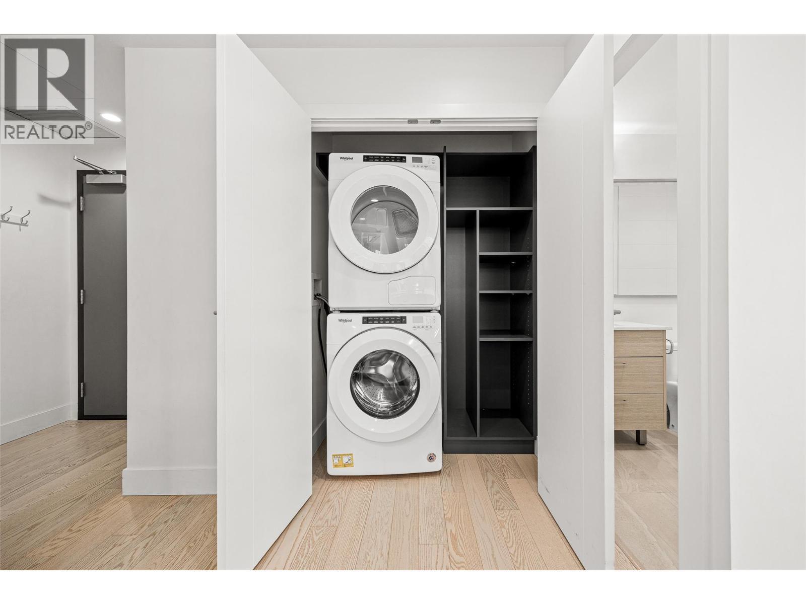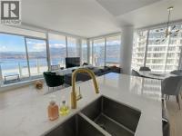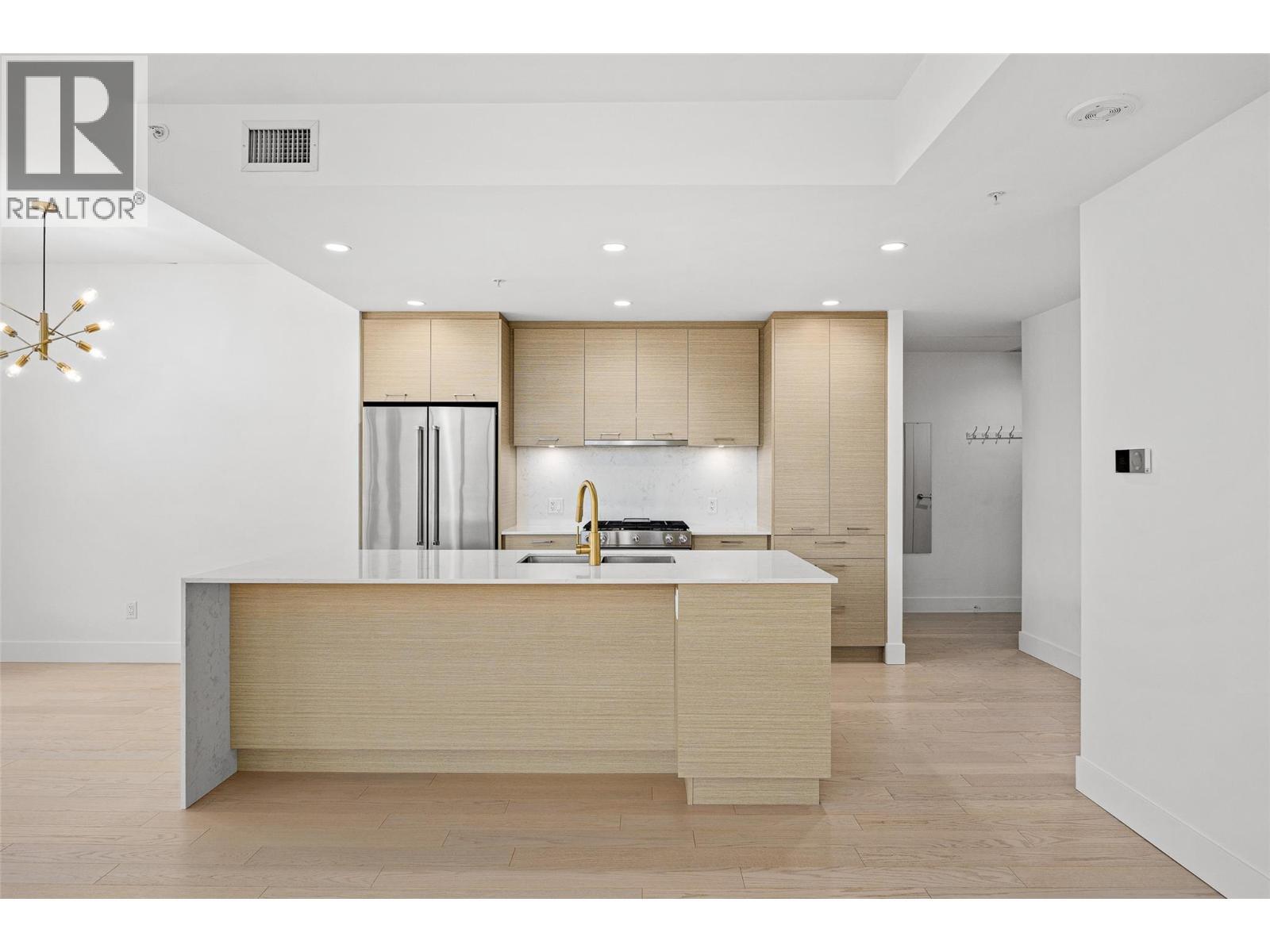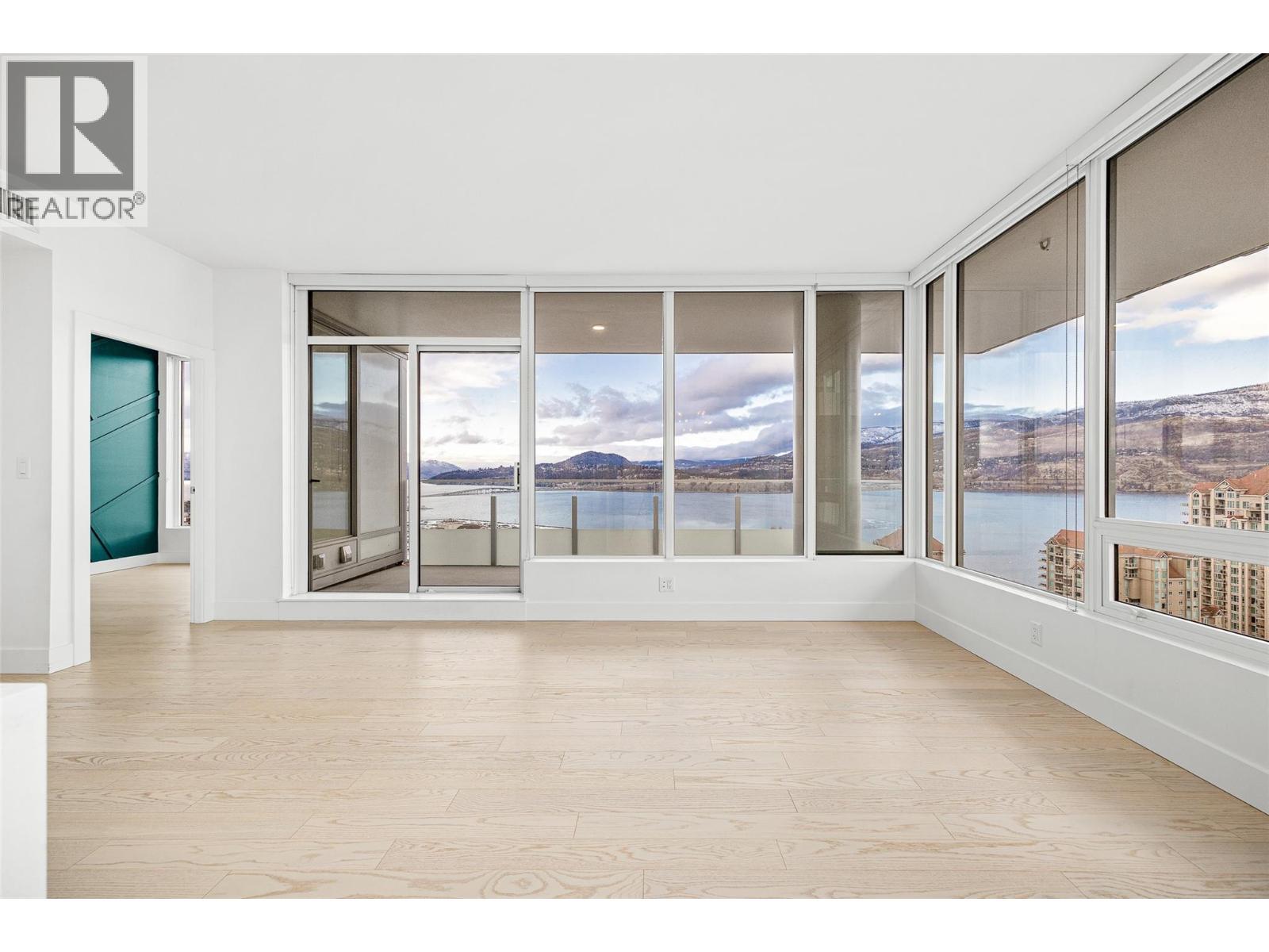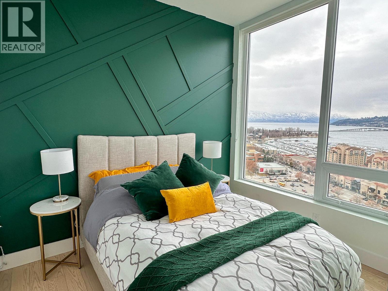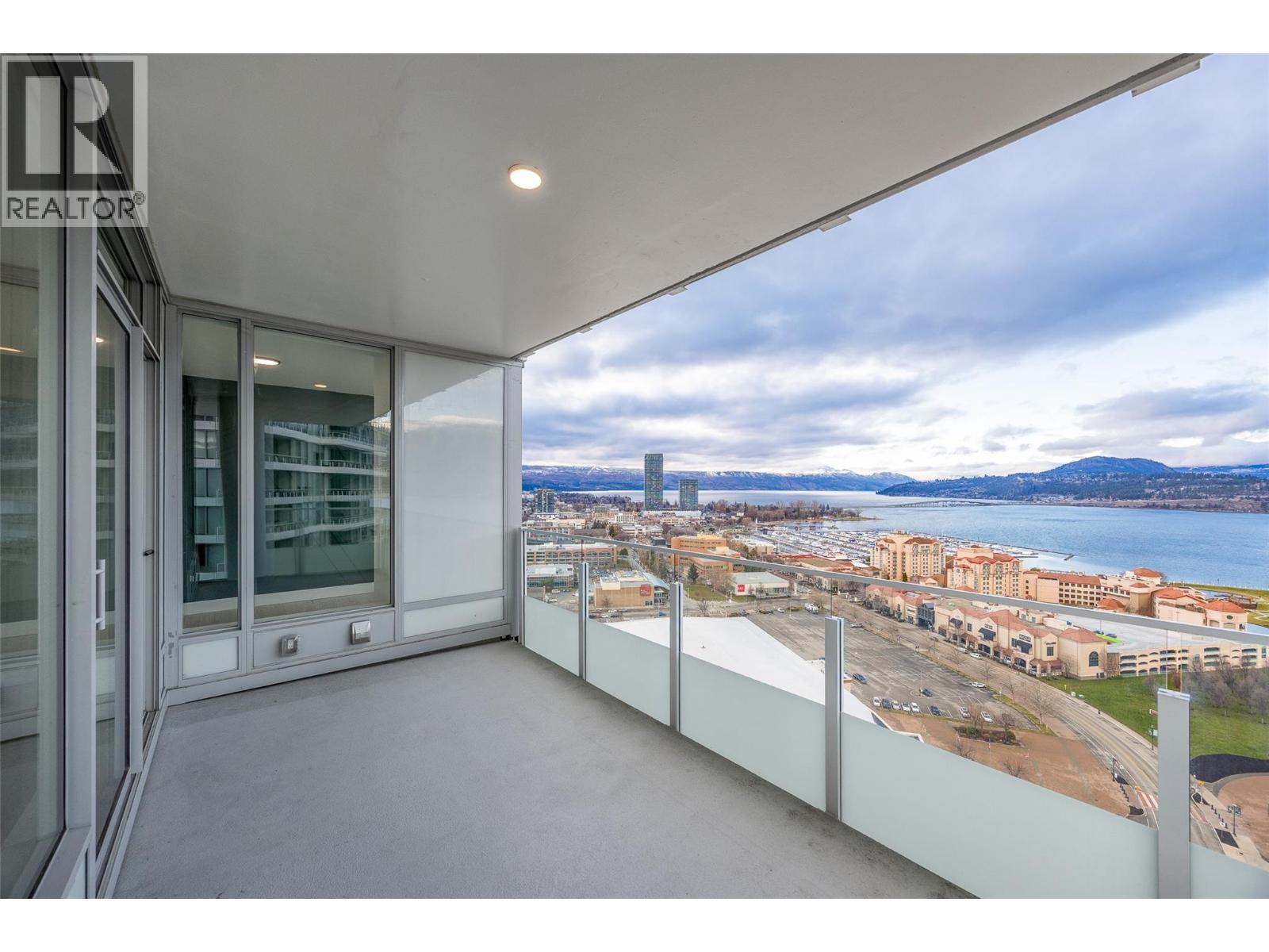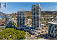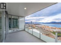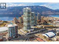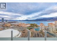 PANORAMIC LAKE VIEWS. Perched high above the city, unit 2205 at One Water Street delivers a true condo-in-the-sky experience with a sweeping west-facing vistas, capturing lake, city mountain & sunset views from every angle! This 2 bed, 2 bath corner unit features an open floor plan where the kitchen, dining and living spaces flow seamlessly to a massive covered sundeck overlooking Kelowna’s waterfront park & Okanagan Lake. The best spot in town to watch boats pass and a front row seat to take in the fireworks! The kitchen blends warm beach tones inspired by Knox Mountain with stainless steel appliances, gas range, island seating, upgraded lighting & near floor to ceiling windows. Custom upgrades include Westwood cabinetry in the primary bedroom and a built-in laundry closet with stacked washer & dryer. The primary bedroom offers a walk-in closet & 3-pc ensuite, while the 2nd bedroom captures jaw-dropping lake views. Ideal as a guest room, office, or flex space! This condo also has a second 4-pc bath with rain shower. Enjoy resort-style amenities: 2 pools, hot tub, fitness centre, yoga studio, steam room, pickleball court, BBQ stations, fire pits, security, guest suites, car wash bay, dog park & more! Includes 1 parking stall near the elevator + 1 storage locker. Convenience meets luxury - live steps to the beaches, restaurants, breweries, coffee shops, Prospera Place, the Cultural District, yacht club + city transit! Move in this spring! A fast possession is possible! (id:6769)
