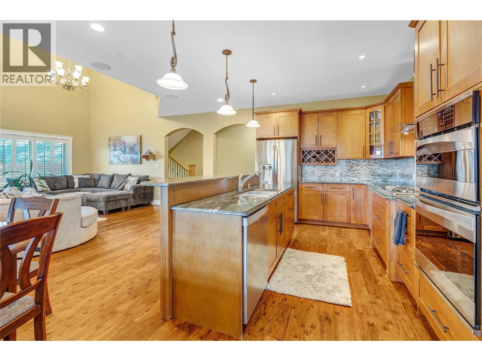 Amazing 8.2 acre property with Great family home & soft fruit Orchard. Spacious main level entry, 2 story open concept living area w/ stacked rock fireplace, kitchen has granite counters, gas stove, double wall ovens, bright eating area, pantry, formal dining room, 2 p bath, & access to covered deck, Also on this level the laundry/mud room off the attached 3 car garage. Additonally on this level; corner office, with 4 p bath & library could be a master bedroom. Upstairs 4 comfortable bdrms, family room, 5 p bath, inviting master bdrm, dbl. doors to the bathroom & walk in closet. Downstairs on the walk out level you will find a large games room, gym & area ready for a bar, Theatre space. 2 p bathroom with full office with its own access & gas fireplace. Full bathroom with steam shower. Orchard planted in nectarine & peaches w/ room for more and large area for the kids to play. Property is completely deer fenced & has detached garage for the farm use. Within walking dist. to downtown, wineries & fruit stand. Suitable for vineyard, is a great location w/ mtn views & more. Call today to view, all measurements taken from IGuide (id:6769)