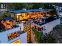 Luminescence, a distinguished Japanese Modern nestled in Sheerwater, Kelowna’s premier gated waterfront community. From the moment you arrive, Sheerwater distinguishes itself. It is a celebration of design, nature, and privacy - a sanctuary where life is lived with intention and distinction. Set on 2.15 acres, nineteen offers exclusive lakeside access with a private marina and unobstructed lake vistas. Its three-story Genkan foyer creates a calming transition from the outdoors. Crafted from concrete, brick, glass, and timber, the residence showcases open interiors filled with natural light. Water features inside and outside create a sense of serenity. The sun terrace, accessible from the great room and primary suite, offers stunning 180-degree lake views and romantic sunsets. Wider than the home itself, the terrace includes multiple outdoor lounge areas, an outdoor kitchen, numerous gas-lit fire features, and a pool deck that seamlessly flows into an infinity pool color-matched to Okanagan Lake. Inside, a series of rooms offer mesmerizing views of exterior water features through clear aquarium panels. Additionally, a lush and private courtyard is off the sunlit, professional-grade kitchen. Built to commercial standards, every detail reflects exceptional craftsmanship, exemplified by the two-story garage with a vehicle lounge, and a spacious passenger elevator. Recognized with awards for home design, primary suite, and luxury pool, Luminescence defines visionary. (id:6769)