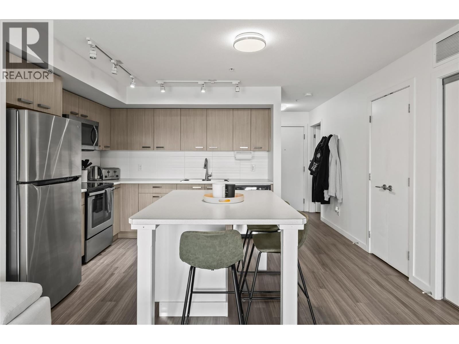 Smart two-bedroom condo, steps to UBC-O. Located at U THREE in the University District, this condo is walkable to UBC-Okanagan, making it a great fit for investment, students, or faculty/staff. This approx. 753 sq ft home features an open living space with island dining, and great natural light throughout. Two bedrooms are thoughtfully separated for privacy, with one offering its own ensuite. In-suite laundry adds everyday convenience. Step outside to a 115 sq ft patio that works well for study breaks, morning coffee, or fresh air between classes. One underground parking space adds peace of mind, while the walk to class location keeps campus life close. Minutes from YLW for frequent travel, with Nester’s Market, restaurants, shops, golf courses, and the Kelowna Family Y nearby. Walkable, peaceful, and well connected, this is an easy choice for those looking to stay close to campus, or YLW while enjoying a comfortable, low-maintenance lifestyle. (id:6769)