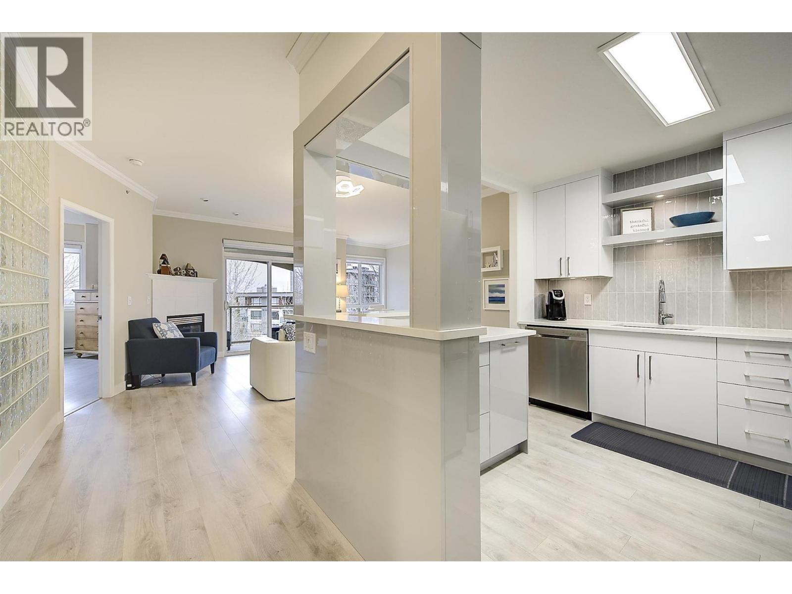 Welcome to this beautifully updated TOP FLOOR 2-bedroom, 2-bathroom condo in the highly sought-after Meadow Brook Estates, where pride of ownership is immediately evident. This home has been meticulously maintained and thoughtfully renovated, offering a truly turn-key living experience. The bright, open-concept layout is filled with natural light and overlooks Mill Creek, providing peaceful views and a serene setting. The spacious Primary bedroom features a lovely, updated ensuite, while the second bedroom includes a cabinet (Murphy) bed, making it ideal as a guest room or a perfect den or office space. The renovated kitchen showcases stainless steel appliances, quartz countertops, pull-out drawers, and ample storage. Updated flooring flows throughout, complemented by beautifully updated bathrooms with quartz counters. A functional laundry room with added cabinetry enhances everyday convenience. Additional upgrades include tile replacement around the fireplace and a newer central vacuum system. This immaculate home includes one underground heated parking stall and a storage locker conveniently located on the second floor. Meadow Brook Estates offers exceptional amenities, including a clubhouse, fitness room, craft room, guest suite, and an outdoor heated pool. Perfectly located just minutes from walking paths, shopping, restaurants, coffee shops, and everyday amenities—this central location offers both convenience and lifestyle. An outstanding opportunity to own a beautifully updated, immaculate condo in a well-managed community. (id:6769)