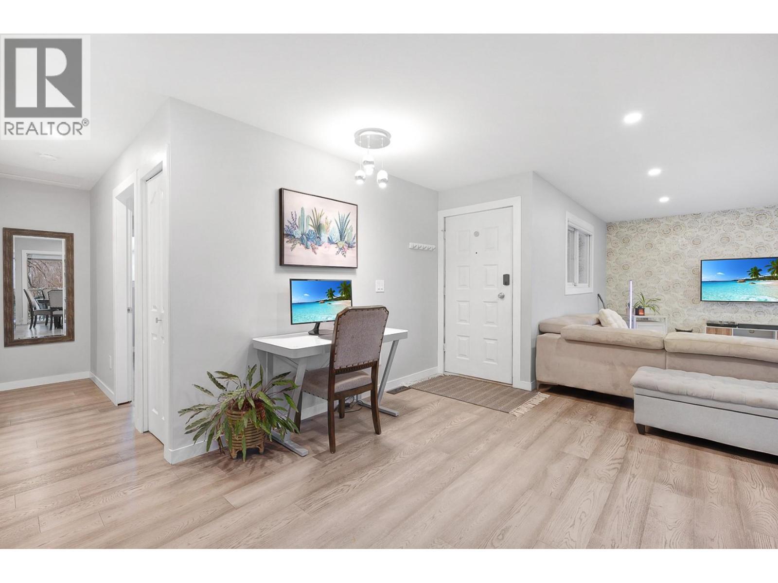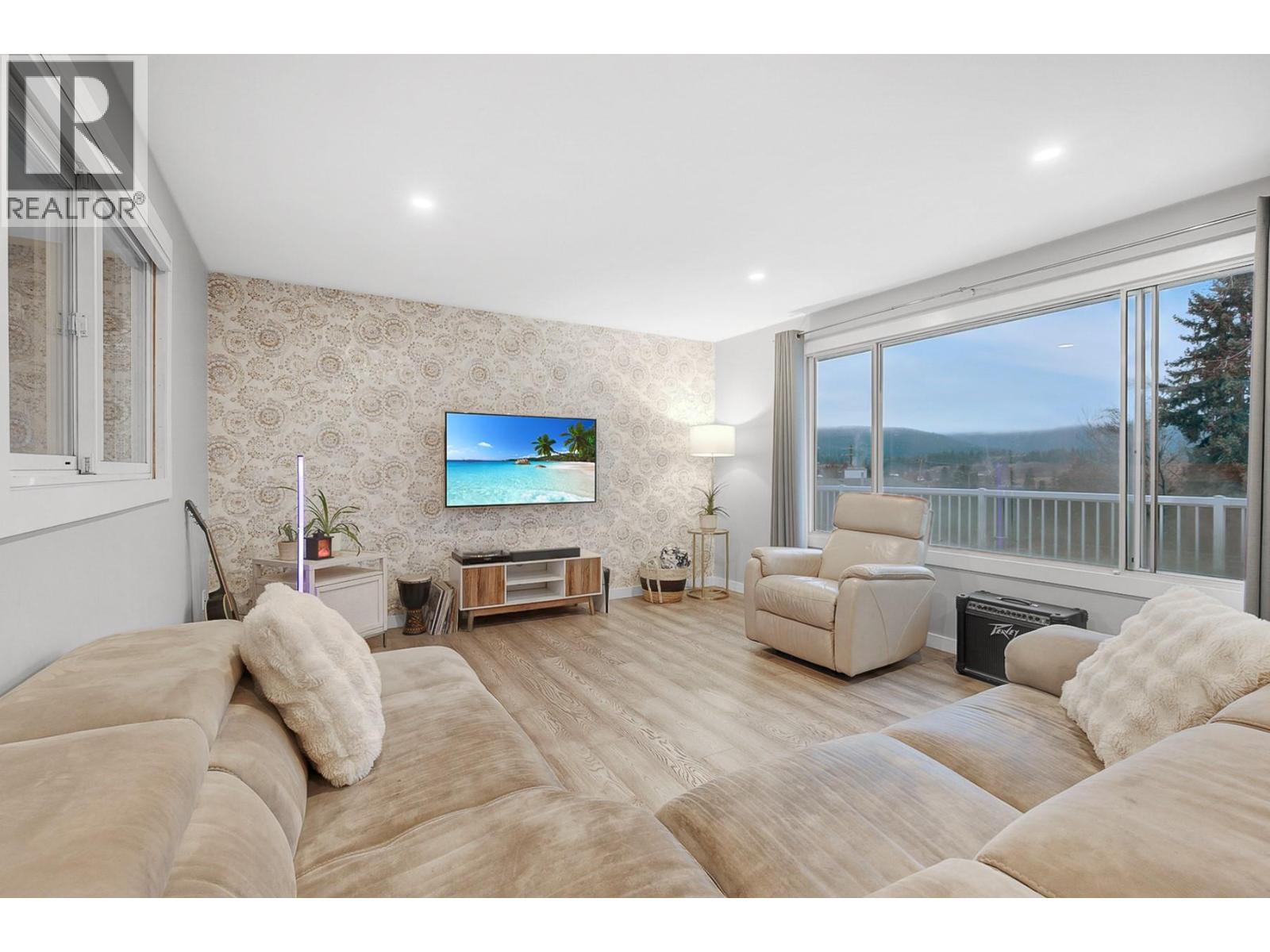 Set in the heart of the Black Mountain Community, this beautifully updated home offers privacy, flexibility, and exceptional outdoor living on a large, mature lot. Surrounded by established trees and open space, the setting is ideal for families, gardeners, or those seeking room to add a future shop while maintaining privacy. The main level has been thoughtfully remodelled into a bright, open-concept layout featuring two bedrooms and a stunning modern 5-piece bathroom. The living, dining, and kitchen areas flow seamlessly together, creating a welcoming space filled with natural light. Step directly out to a full-width deck spanning the back of the home, perfect for entertaining, relaxing, and enjoying the peaceful surroundings. The lower level offers excellent versatility with a fully self-contained 1 bedroom + den suite, complete with its own kitchen, living area, laundry, and private entrance. Covered and enclosed patio areas on this level provide additional outdoor living space with privacy and year-round usability. Located minutes from parks, trails, schools, and the Black Mountain Golf Club, this property combines lifestyle, comfort, and future potential in one of Kelowna’s most sought-after neighbourhoods. Located minutes from parks, trails, schools, and golf, with easy access to Big White and downtown, this home offers space, privacy, and flexibility in a true community setting. Love Where You Live! (id:6769)