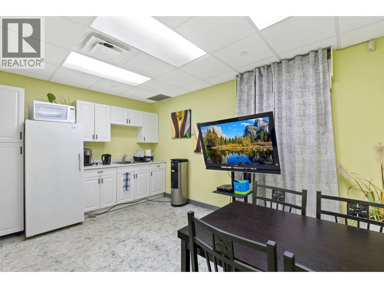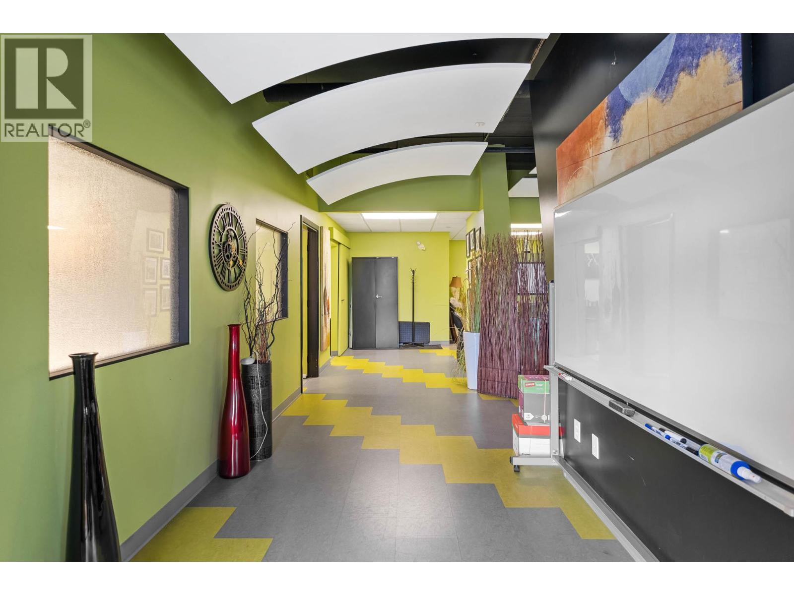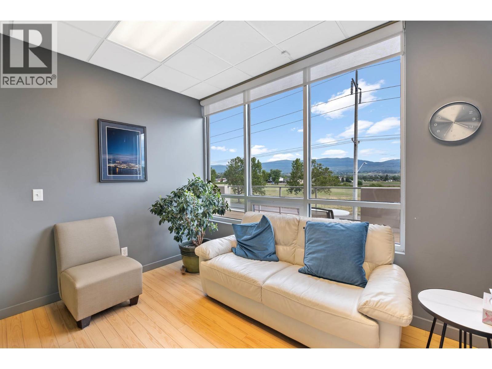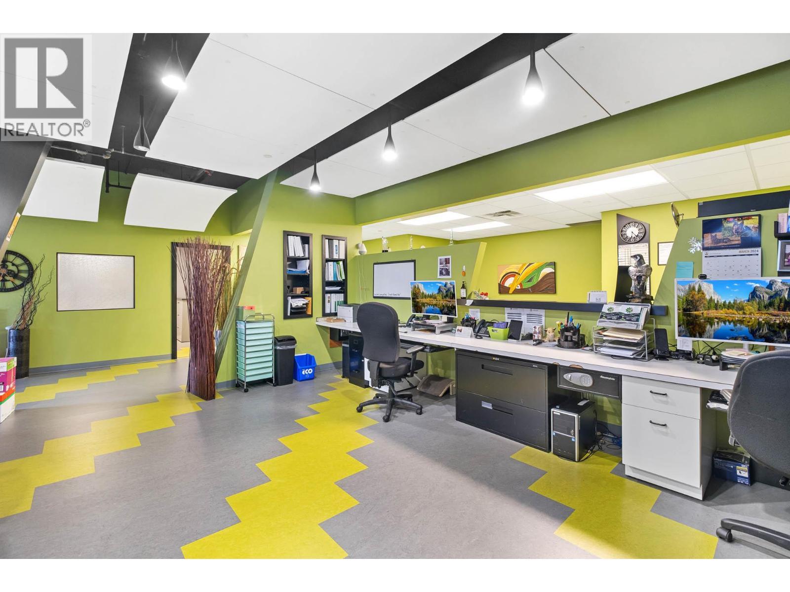 Second-floor Invue commercial unit offering approximately 1,694 sq. ft. in a concrete high-rise. The well-designed floor plan includes a welcoming reception area, 3 private offices, a large open area presently set up in cubicles and a dedicated staff room, complemented by eye catching designer finishes and colours throughout. Ideal for a wide range of professional and service-oriented uses including medical or dental clinic, physiotherapy or wellness practice, accounting or law office, real estate or insurance brokerage, tech or consulting firm, or boutique professional services (subject to applicable zoning). A key advantage is the built-in clientele from the building’s 92-unit residential component, providing consistent foot traffic and convenience-driven demand. The property is exceptionally well positioned in central Kelowna’s midtown core, just steps from Orchard Park Shopping Centre and directly behind Orchard Plaza, placing it within one of the city’s busiest commercial and retail corridors. Surrounded by major employers, transit routes, and established neighbourhoods, this location offers excellent accessibility for both clients and staff, with easy connections to Downtown, Highway 97, and surrounding communities. Additional features include outdoor space, access to common washrooms, two designated underground parking stalls, and visitor parking available on site. An opportunity to secure a high-quality commercial space in a central location. (id:6769)