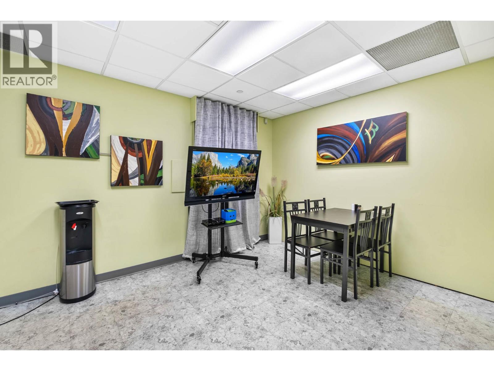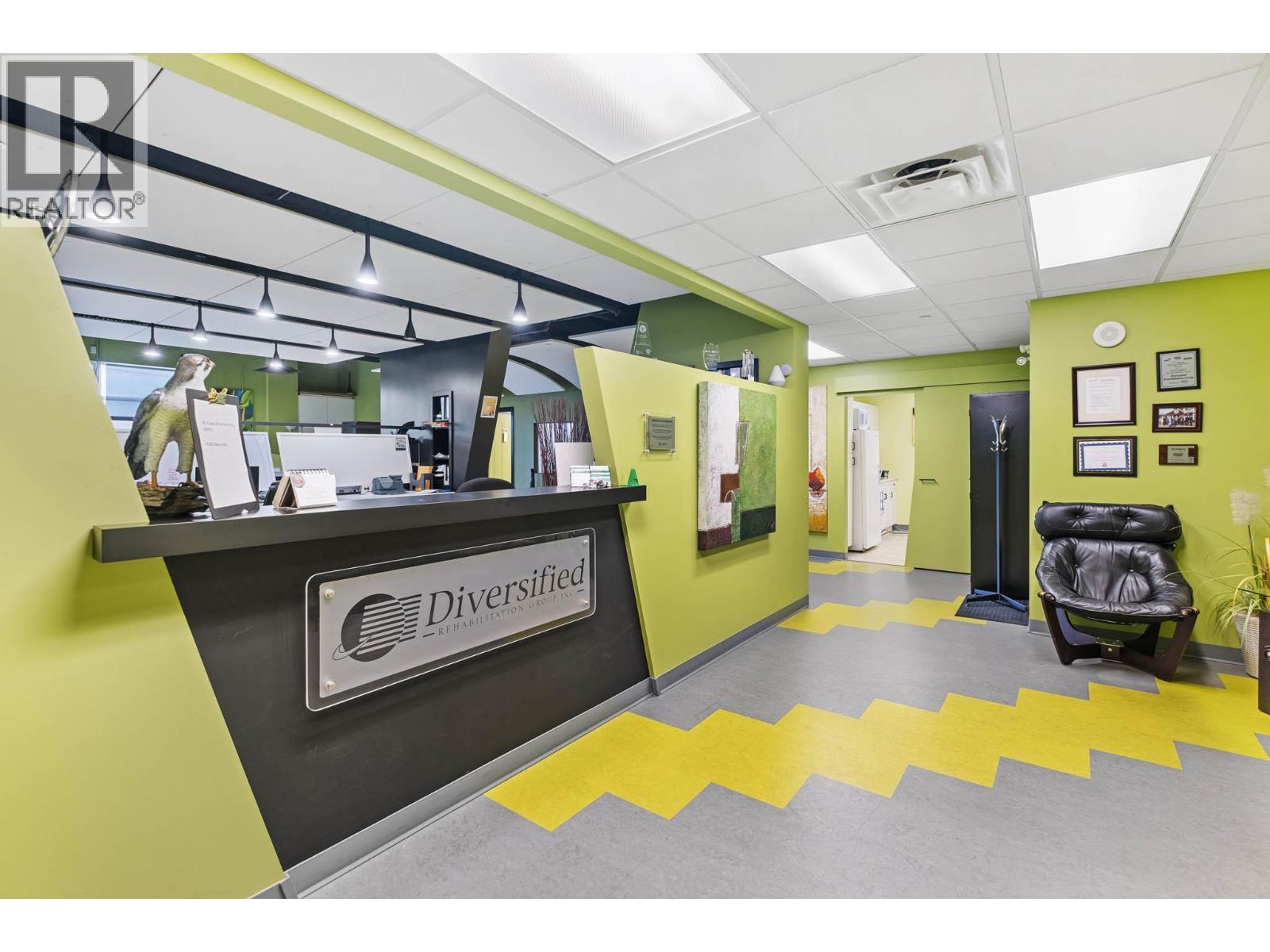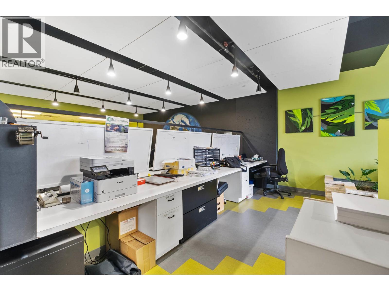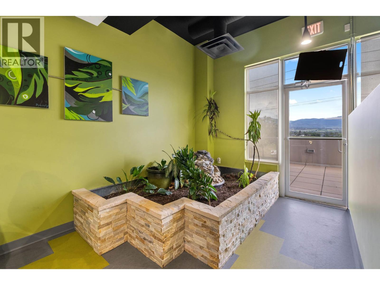Second-floor Invue commercial unit offering approximately 1,694 sq. ft. in a concrete high-rise. The well-designed floor plan includes a welcoming reception area, 3 private offices, a large open area presently set up in cubicles and a dedicated staff room, complemented by eye catching designer finishes and colours throughout. Ideal for a wide range of professional and service-oriented uses including medical or dental clinic, physiotherapy or wellness practice, accounting or law office, real estate or insurance brokerage, tech or consulting firm, or boutique professional services (subject to applicable zoning). A key advantage is the built-in clientele from the building’s 92-unit residential component, providing consistent foot traffic and convenience-driven demand. The property is exceptionally well positioned in central Kelowna’s midtown core, just steps from Orchard Park Shopping Centre and directly behind Orchard Plaza, placing it within one of the city’s busiest commercial and retail corridors. Surrounded by major employers, transit routes, and established neighbourhoods, this location offers excellent accessibility for both clients and staff, with easy connections to Downtown, Highway 97, and surrounding communities. Additional features include outdoor space, access to common washrooms, two designated underground parking stalls, and visitor parking available on site. An opportunity to secure a high-quality commercial space in a central location. (id:6769)