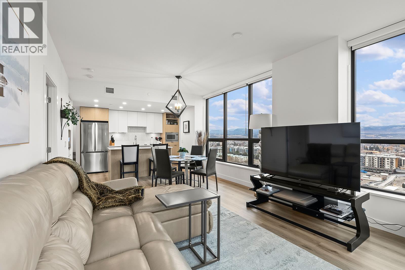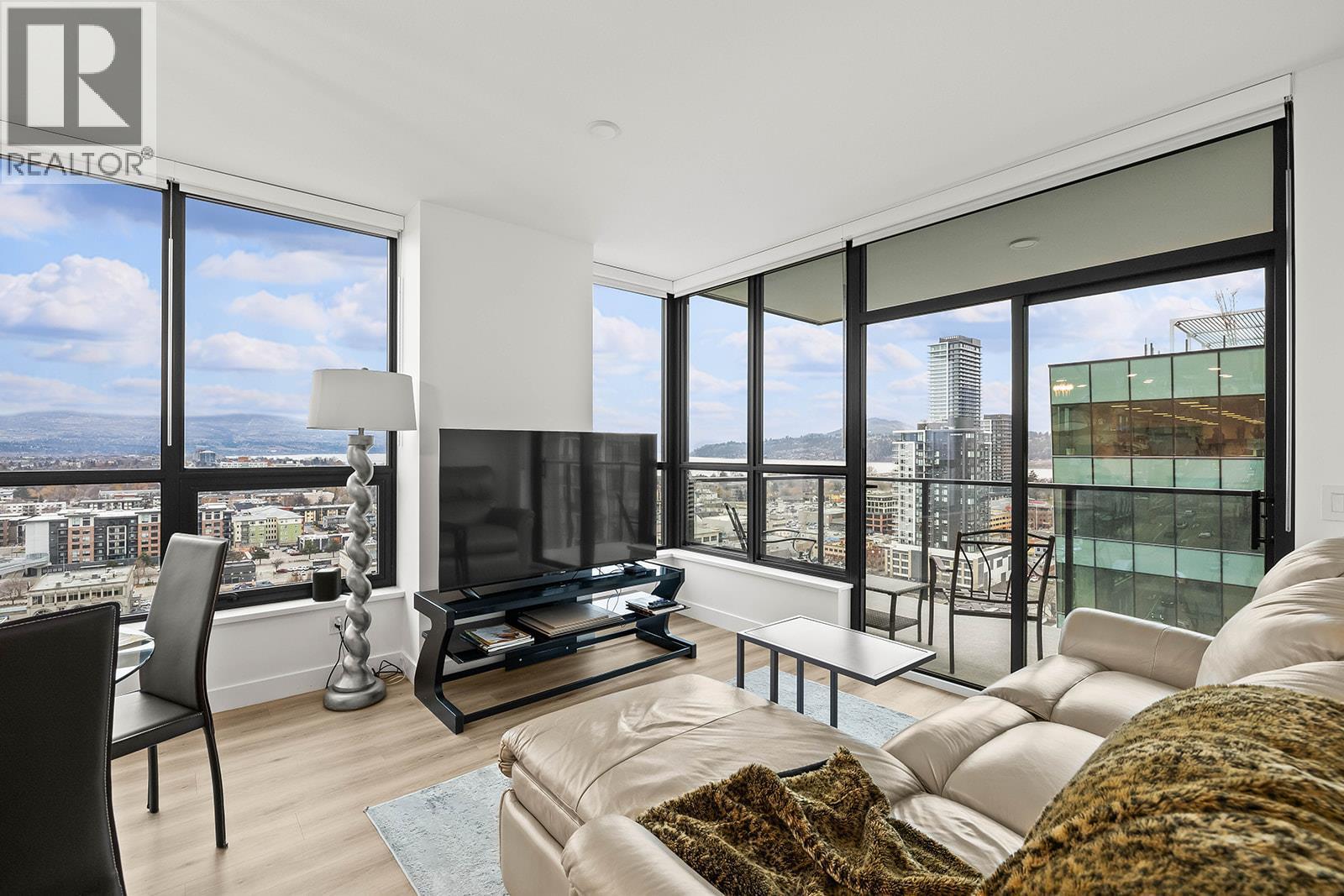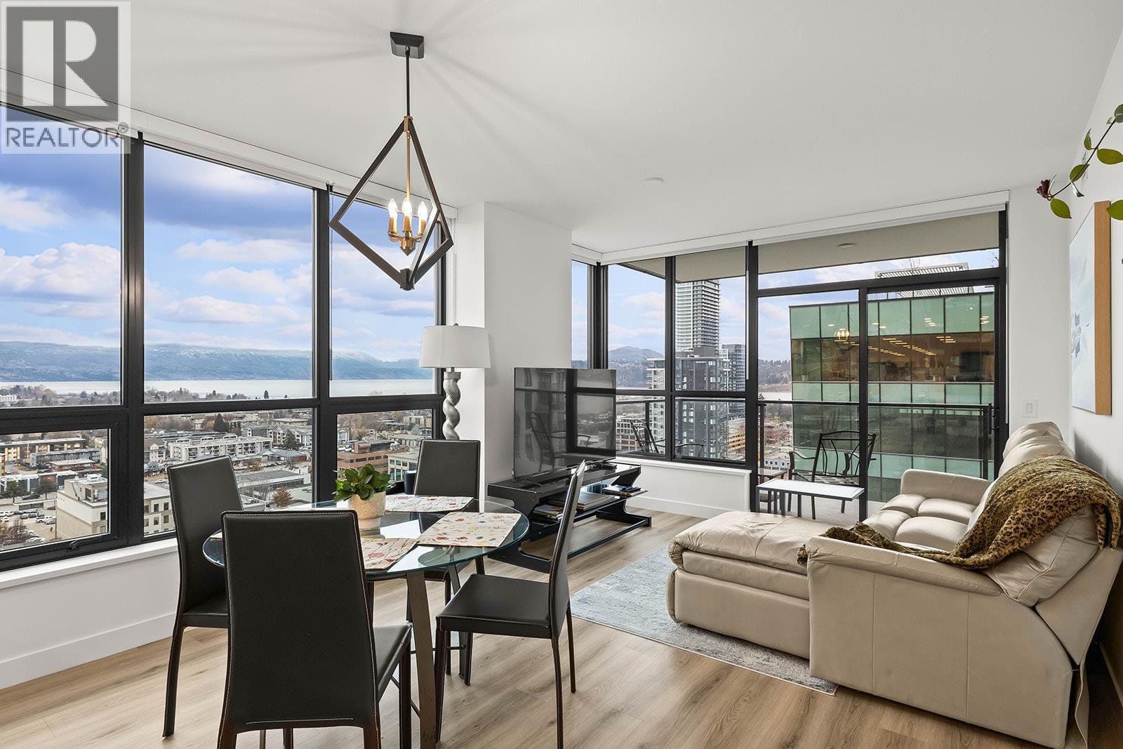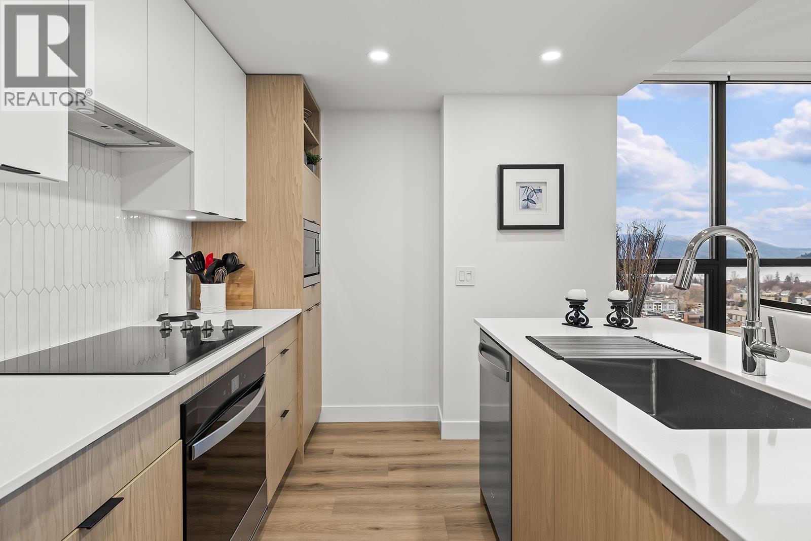 Lake Views and the very best sun exposure from this corner unit. The two bedrooms have upgraded flooring, the primary has a great walk-in closet and both offer beautiful Lake Views. The kitchen features modern flat panel cabinetry with beautiful warm and white colour scheme and upgraded microwave with trim kit. This home has two spacious bathrooms and convenient in suite laundry. Unwind in the evening on your balcony and enjoy sunsets and city lights. Neighbours will be envious of your TWO side by side, secured underground parking stalls and storage unit. This luxury building provides First Class Amenities including infinity sky pool & hot tub, rooftop kitchen with lounge, fitness room, dog run & wash station, rooftop and street level co-work space plus a party room. Get in touch today for your private viewing and treat Yourself to Resort Living and the Ultimate Okanagan lifestyle!! (id:6769)