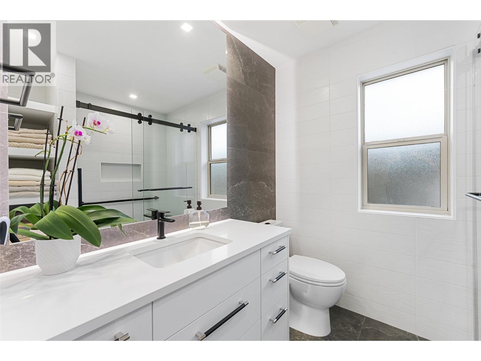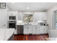 Steps from Dilworth Mountain Park, this rancher-style walkout sits on 0.27 acres of natural landscape. The main level offers open-concept living with vaulted ceilings, hardwood floors, and an updated kitchen featuring white Calacatta quartz countertops, a Dynasty gas cooktop, and a spacious island. Double doors lead to a large paver stone patio perfect for summer entertaining. The primary suite includes a private deck, walk-in closet with built-ins, and a three-piece ensuite with heated tile floors and a tiled walk-in shower. Two additional bedrooms and an updated four-piece bath complete this level. The lower level offers a state-of-the-art media room with projector screen, surround sound, and a wet bar. The rec room offers room for a games table, lounging, or guest accommodations, a fully updated three-piece bath with walk-in shower and built-in bench adds spa-like comfort. Two large storage rooms, and walkout access to the covered lower patio connects you to the natural beauty of the property. Updated all bathrooms, laundry recently renovated, updated kitchen quartz countertops, plantation shutters. New roof, new landscaping, all new pavers around house and decking, extensive garden lighting, new high-end fencing, automatic dusk til dawn lighting, new Heat Pump, Air Conditioner, new AprilAire humidifier. Three-car heated garage with epoxy floors and NuLine garage cabinets (included). Neighbours only on one side for added privacy. (id:6769)