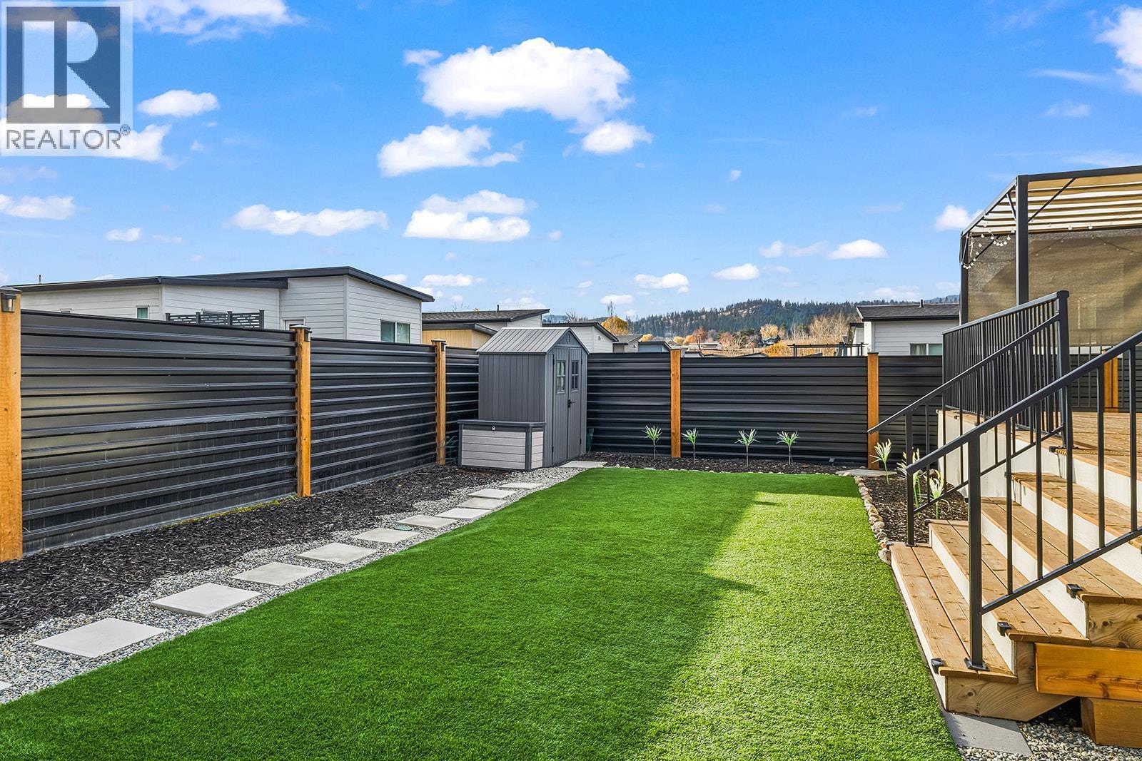 OVER $75,000 IN TOTAL UPGRADES - NO GST OR PROPERTY TRANSFER TAX - Flexible Possession! - Welcome to one of the most RARE floor plans in the desirable Deer Meadows Estates. This thoughtfully designed 2-bed, 2-bath layout is ideal for those who love the EXTRA spaciousness to unwind & entertain, forgoing the 3rd bedroom option. This results in an open-concept kitchen, dining, and living area that feels both expansive & inviting. The home showcases a full garage addition ($33k), upgraded interior package ($6800) with modern electric fireplace and energy-efficient hot water on demand, and a premium kitchen upgrade ($7350) featuring shaker panel cabinets, quartz countertops with seamless backsplash, undermount Blanco sink, under-cabinet LED lighting, & 9 deep drawers for enhanced storage. As well as a luxury double door fridge ($2500). Enjoy indoor-outdoor living with sliding doors leading to the patio & upgraded brown pressure-treated wood deck ($12,600). Additional outdoor enhancements include a second deck, landscaped backyard with pet-friendly synthetic turf, gazebo & shed, creating a full outdoor retreat ($7500). More Seller-added upgrades include washer and dryer, water softener & blinds. Deer meadows offers a pet friendly, modern, low-maintenance lifestyle with exceptional value & flexibility. Residents enjoy a community pickleball court & the Okanagan Rail Trail. Short-term rentals are permitted, adding excellent investment versatility. A great opportunity awaits! (id:6769)