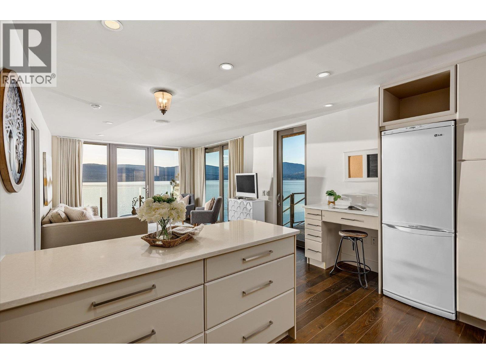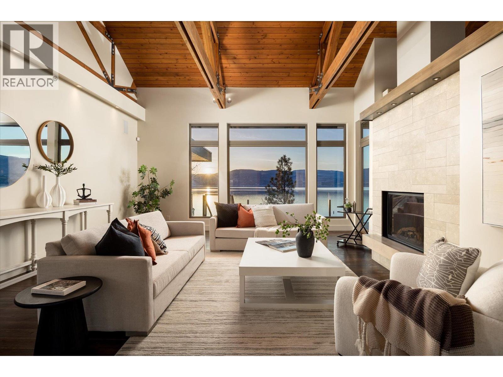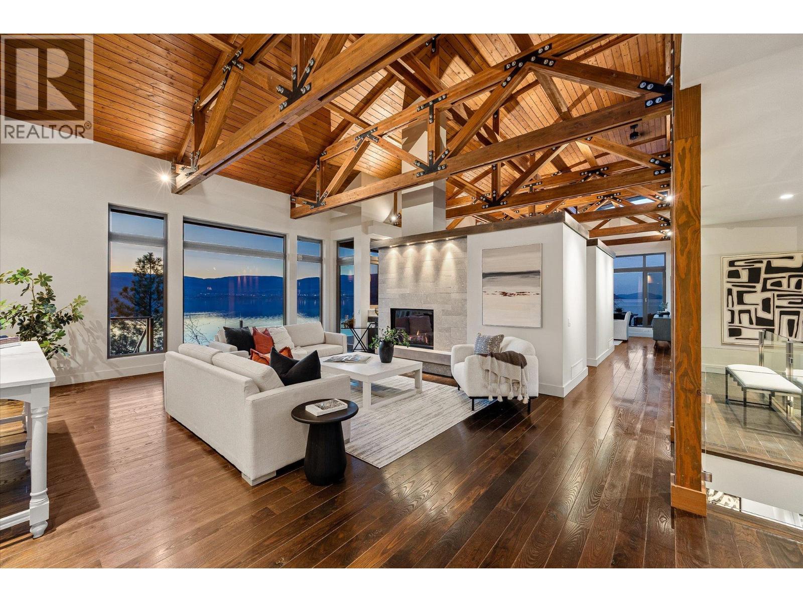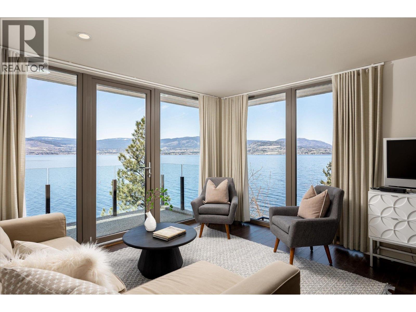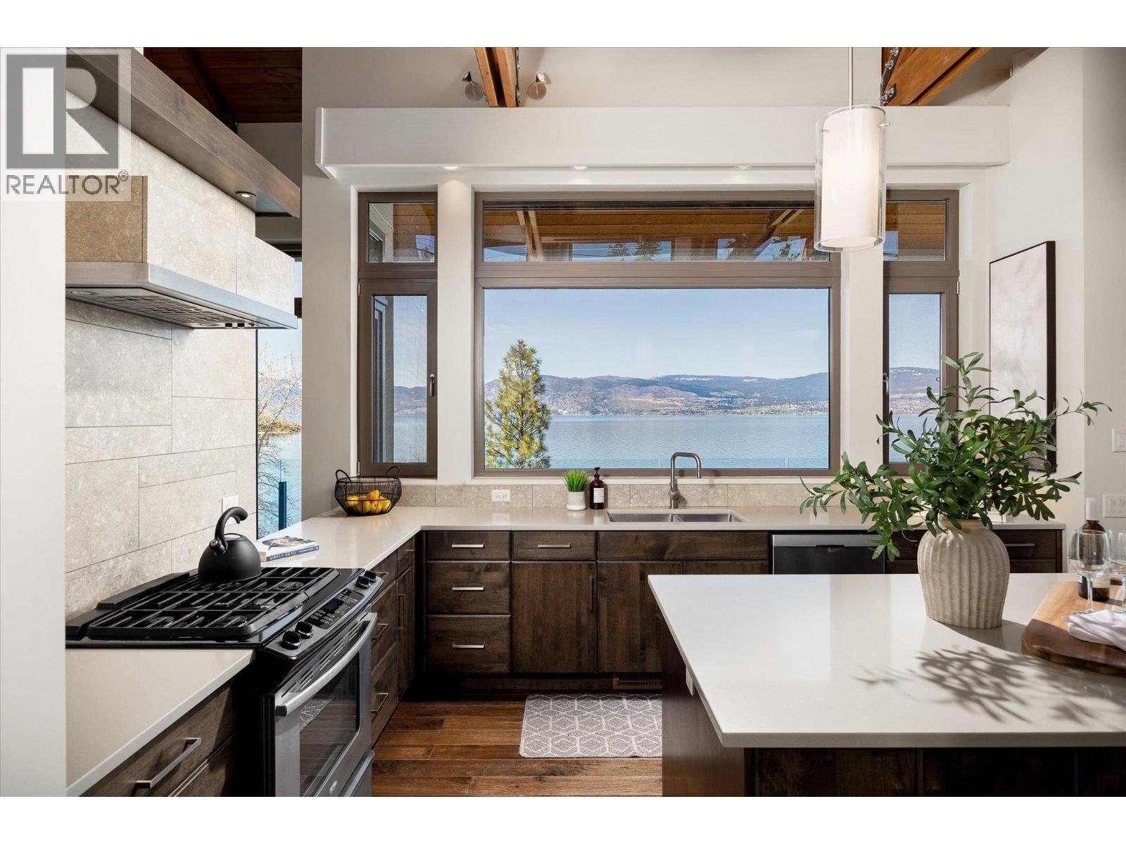 Known as Asparagus Bay, this home is built to celebrate Okanagan life. Its 1.297 acres - nurtured into an award-winning water-wise garden - offer a 5000+ square foot house designed by Architect Robert Turik to create ideal views, a roofline that honors the surrounding hillsides, access to outdoor living spaces, sunlight exposure, & privacy. Six bedrooms and four bathrooms total! Inside, the ceiling follows curved trusses varying from 12.5 feet to 20 feet high; the main south-facing windows ensure year-round sun; European tilt windows allow for extra airflow and cross breezes; & a bank of upper windows draw in the morning light. Upstairs, the kitchen is book-ended by living spaces, the master & ensuite both provide lake views, and a one bedroom suite offers privacy to guests. Every room provides seamless access to outside, including 1100+ square feet of patio space with stairs to another deck below. Downstairs offers two bedrooms and one bathroom, a kitchenette, access to outdoors, storage, and another roughed-in suite with kitchen and bathroom plumbing. Outside, walk down an accessible path (the old orchard-donkey path!) to 219 feet of lakeshore frontage with beach-entrance swimming and a private 130 foot dock built in 2018, and featuring both a three tonne hoist and parking for guests. The lot is bisected by Lakeshore Road, so landscaped uplands offer additional parking, a deer-fenced garden with fruit trees and berries, space for a workshop, and long-term development/subdivision potential. Walking distance to Cedar Creek Winery, Martin's Lane, waterfront parks, & more. (id:6769)