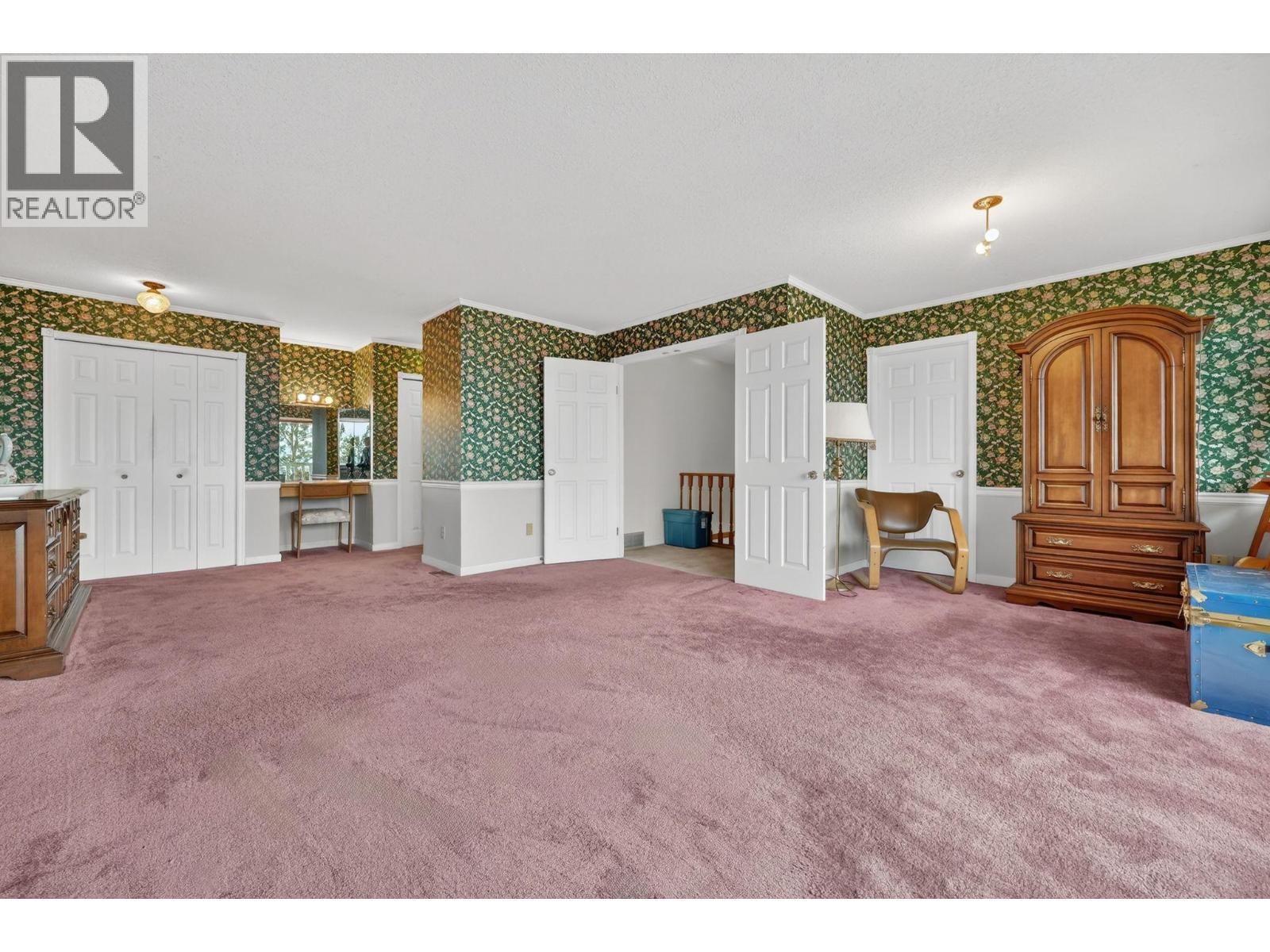 Enjoy sweeping city, lake, and mountain views from this centrally located Lower Mission home, situated on a generous .37-acre cul-de-sac lot beside a public walkway (ideal for walking to schools and quick access to amenities). This home offers four bedrooms up, including the primary with sliding doors to a spacious view balcony, one bedroom down, and 3.5 bathrooms. The partially finished walk-out basement features a large covered patio and excellent potential for a legal suite or in-law accommodation. The main floor includes a cozy wood-burning fireplace, formal dining area, oak parquet flooring, and an island kitchen open to the family room and two sets of garden doors leading to a large sundeck. Triple garage with open driveway parking for additonal vehicles, including RV/boat. This is a fixer-upper with significant upside, whether through renovation, reconfiguration, or future lot potential it's a great opportunity in a highly sought-after neighbourhood known for strong long-term property values. RU1 zoning (Suburban Residential) allows for single detached homes and compatible secondary uses like townhouses or small daycare centers (generally accommodating up to four dwelling units providing low-density housing for families with options for increased density through permitted secondary uses) all detailed in Kelowna's Zoning Bylaw No. 12375. (id:6769)