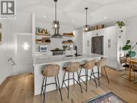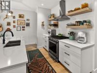 Set on a quiet, treelined street just steps from the downtown core, this modern townhome offers outstanding walkability to the waterfront, restaurants, coffee shops, and everyday conveniences. The main level features a welcoming entry with generous storage, a full bathroom, a bedroom, and a separate flex space that works well as a home office, gym, or another bedroom. This level also includes an attached garage with direct street access, plus an additional driveway parking space. A crawl space provides valuable extra storage, a rare bonus for townhome living. The second level is bright and well laid out, offering an open concept living and dining area designed for both everyday comfort and entertaining. The modern kitchen features clean lines, a gas range, and a large island with seating for four. Hardwood flooring runs throughout the home, with no carpet. A spacious bedroom, full bathroom, and in unit laundry complete this level. The top level is dedicated to outdoor living, highlighted by an expansive private rooftop deck. With plenty of room for entertaining or relaxing, the deck offers beautiful views toward Knox Mountain and is ideal for enjoying Okanagan summers. The building is self-managed, keeping strata fees very low, and water is included. In short, this is a well designed, low maintenance home, offering quiet surroundings with unbeatable access to the city. (id:6769)