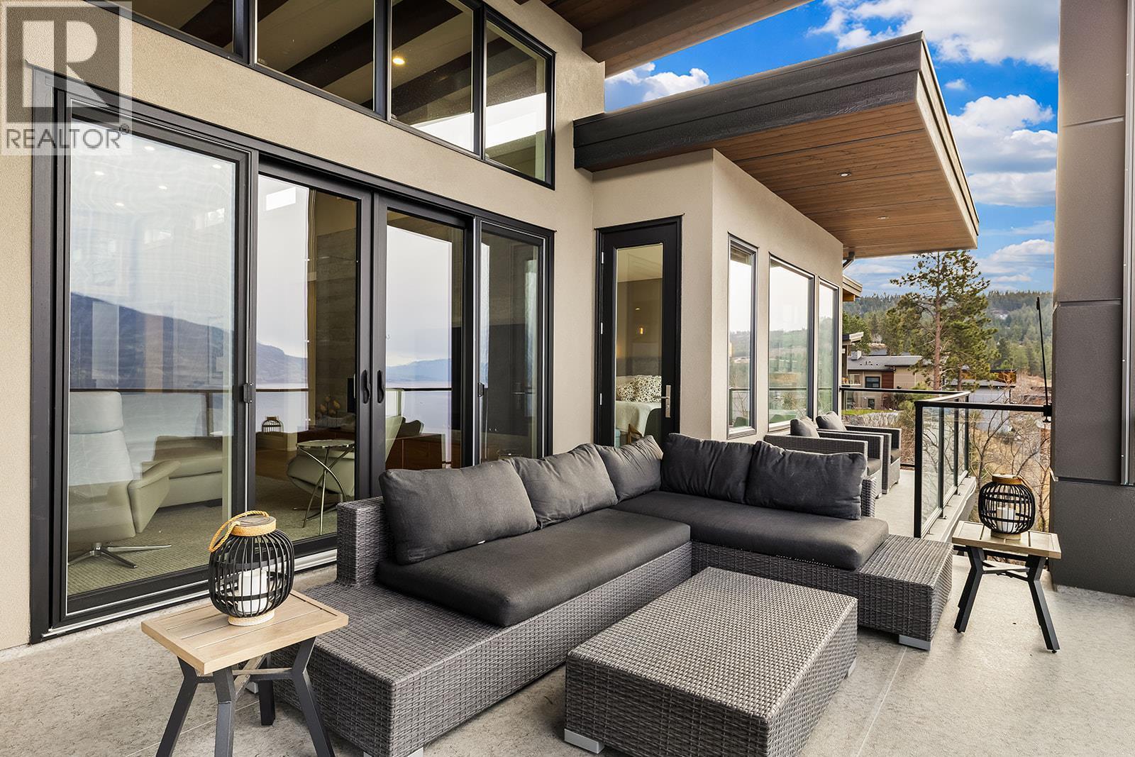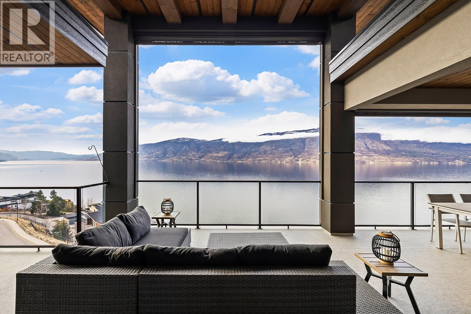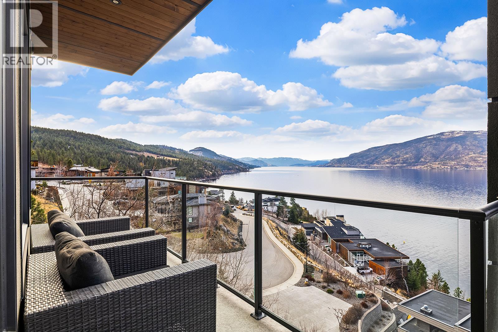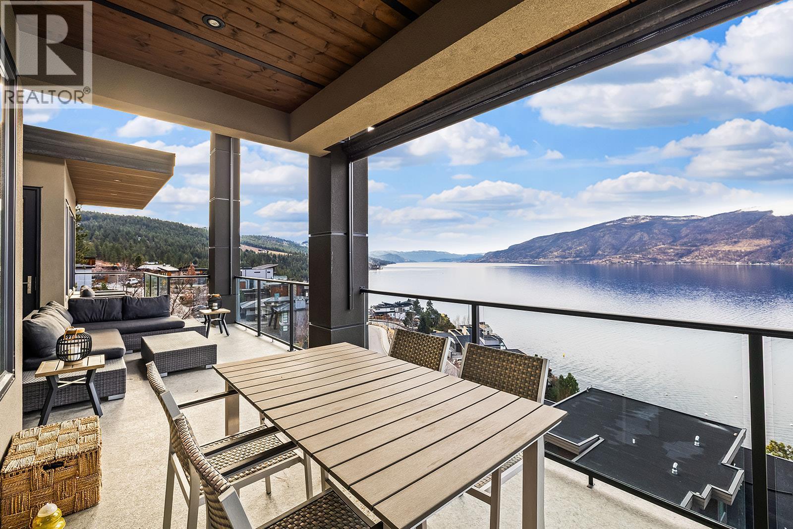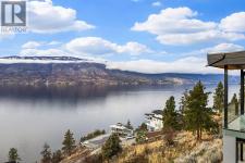 Don't miss out on this stunning home with breath taking views of the lake and mountains in this exclusive Lakestone waterside in lake country. This home has barley been lived in and is in pristine condition. The moment you enter the front door, you're embraced into a space where luxury meets comfort. The panoramic lake view stretches from the bridge in the south to Fintry in the north. Enjoy the main floor great room , with cedar beams, cozy fireplace, professionally designed kitchen with Thermador appliances, stone countertops, dedicated wine fridge and custom horizontal grain walnut cabinetry. The architectural details continue with striking beams leading out to the large deck designed for entertaining, and enjoying the vibrant sunsets. The primary suite on the main floor has a lavish ensuite with oversized walk-in shower, soaker tub, and wiring for hot tub on the aggregate covered deck . The lower level offers a spacious rec. room with a wet bar, 2 additional bed rooms and 2 full bathrooms. The state of the art amenities center in Lakestone include 2 pools, 2 fitness facilities, basket and pickle ball courts, shared dock, endless walking and hiking trails, and a quick walk to the lake access. (id:6769)
