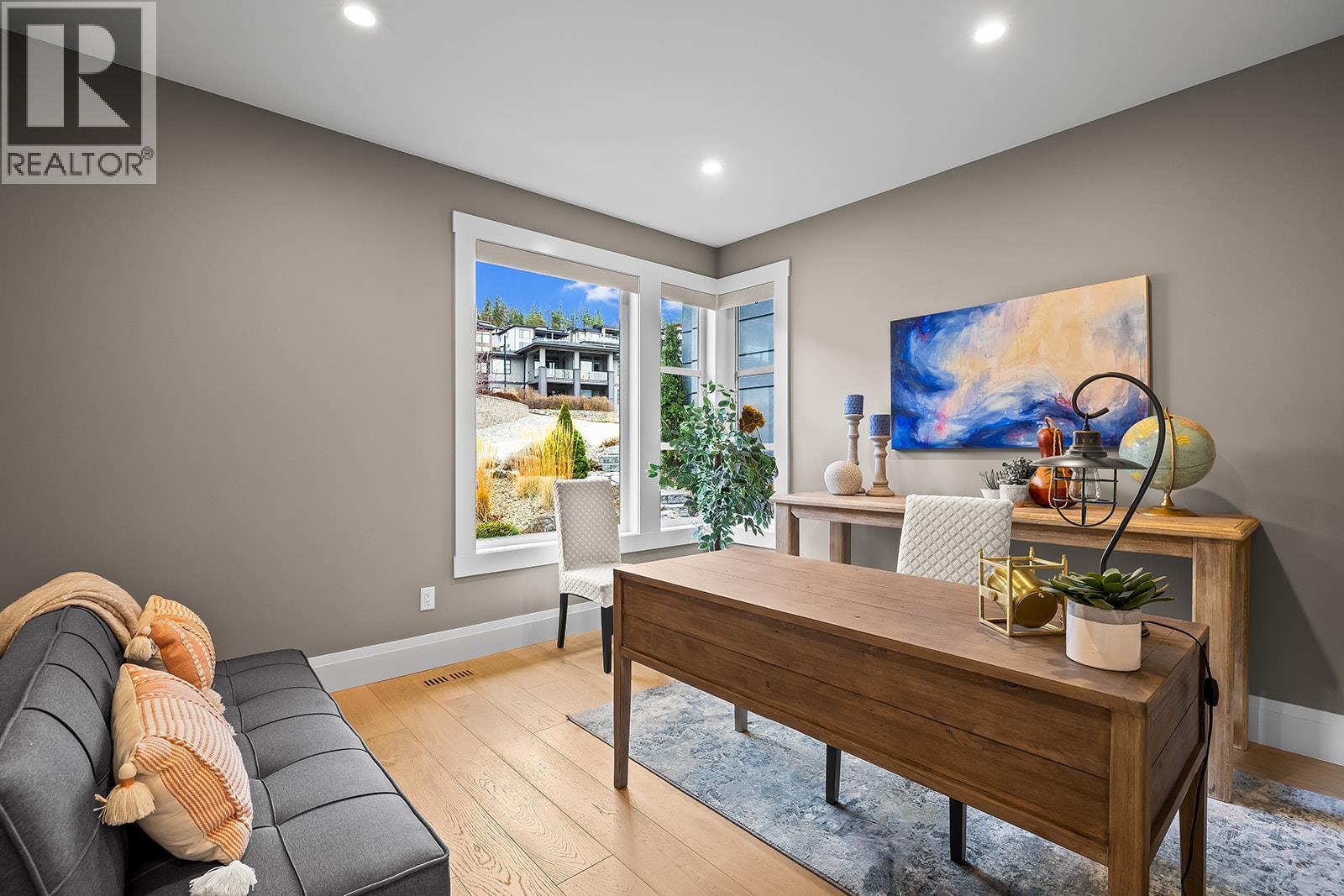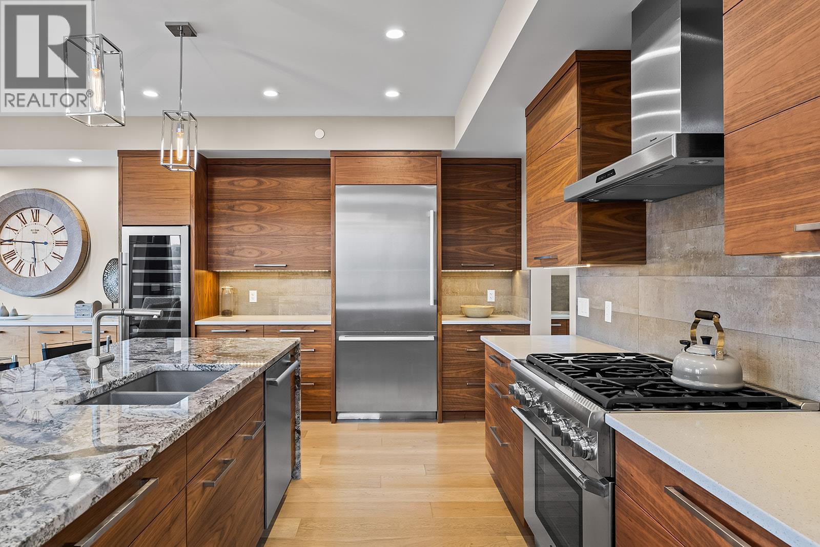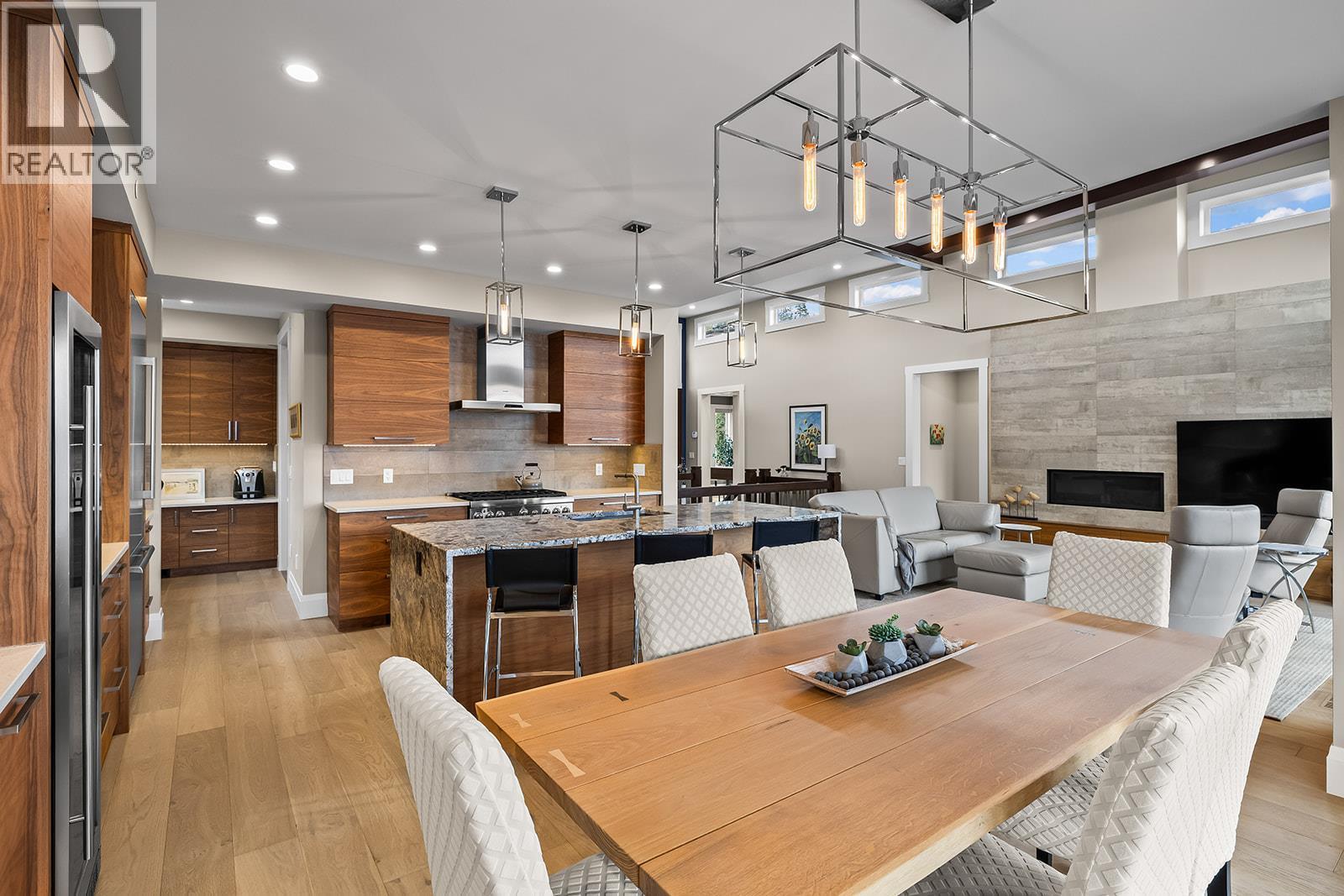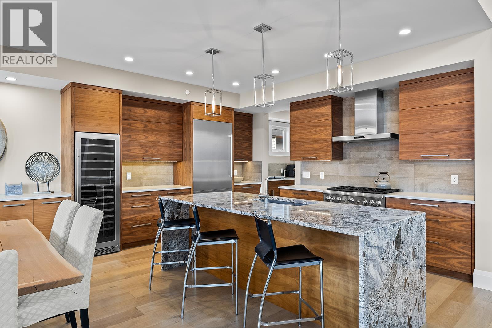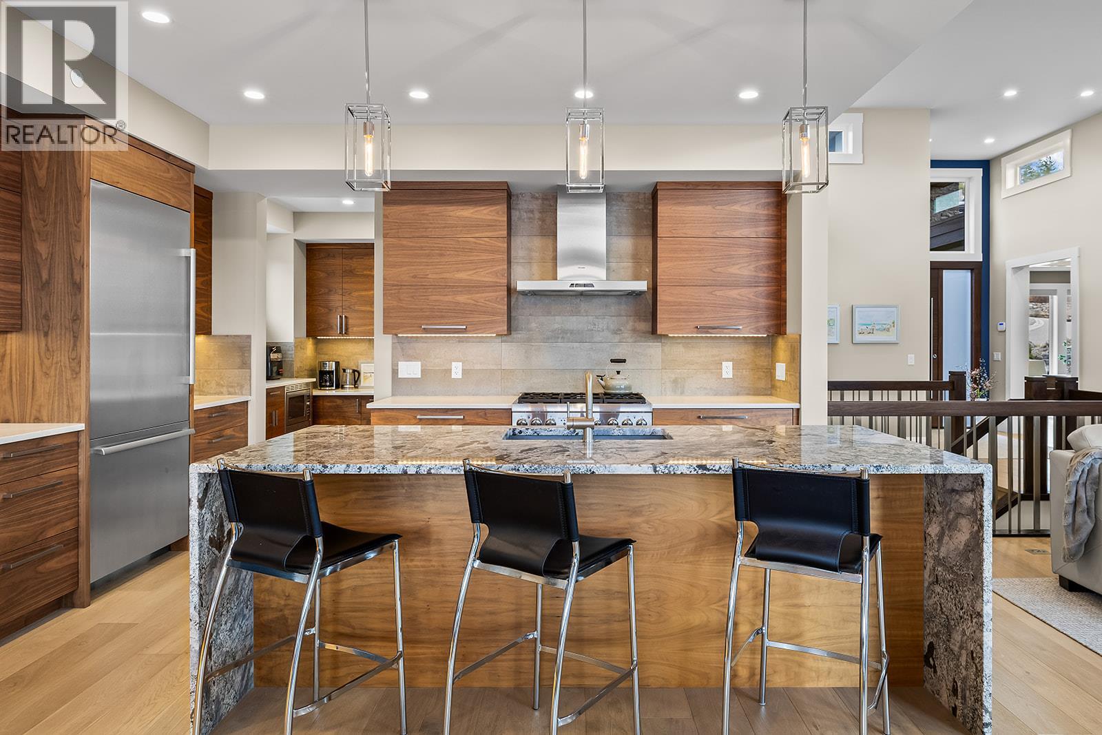 Don't miss out on this stunning home with breath taking views of the lake and mountains in this exclusive Lakestone waterside in lake country. This home has barley been lived in and is in pristine condition. The moment you enter the front door, you're embraced into a space where luxury meets comfort. The panoramic lake view stretches from the bridge in the south to Fintry in the north. Enjoy the main floor great room , with cedar beams, cozy fireplace, professionally designed kitchen with Thermador appliances, stone countertops, dedicated wine fridge and custom horizontal grain walnut cabinetry. The architectural details continue with striking beams leading out to the large deck designed for entertaining, and enjoying the vibrant sunsets. The primary suite on the main floor has a lavish ensuite with oversized walk-in shower, soaker tub, and wiring for hot tub on the aggregate covered deck . The lower level offers a spacious rec. room with a wet bar, 2 additional bed rooms and 2 full bathrooms. The state of the art amenities center in Lakestone include 2 pools, 2 fitness facilities, basket and pickle ball courts, shared dock, endless walking and hiking trails, and a quick walk to the lake access. (id:6769)
