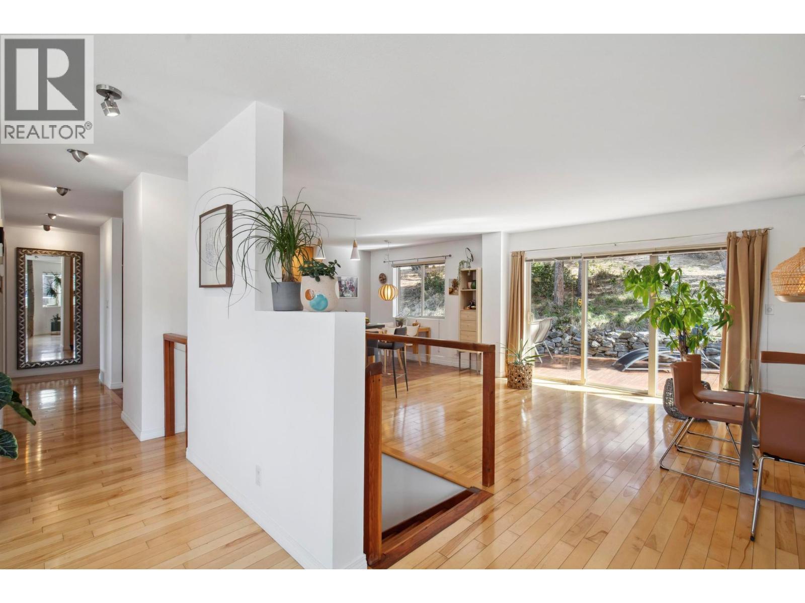 Located in the prestigious northern part of Magic Estates, this architecturally designed 4 bed 3 bath home offers gorgeous views of Okanagan Lake and the mountains. Designed to maximize natural light, it features oversized windows on all sides, bathing every room in daylight and offering stunning views from nearly every angle. With far more windows than a typical home, the design ensures a bright, open atmosphere throughout. Custom built with quality and longevity in mind, the home features a durable cement tile roof, offering fireproofing, exceptional thermal mass, and superior insulation for year-round comfort and energy efficiency. The spacious foyer leads to Douglas fir stairs with glass railings, opening to the upper level. Solid hardwood and ceramic tile floors provide timeless elegance. The living area boasts a cathedral ceiling, a gas stove on a stone feature wall, and panoramic lake and mountain views. A 180 sq. ft. covered balcony is perfect for relaxation. The kitchen offers ample counters, a gas range, and custom-built cabinetry for style and functionality. The dining room opens to a red cedar deck and tranquil low maintenance yard with mature trees. The lower level includes a bright office or studio with large windows, a spacious gym that can double as a theater, music room, or flex space, a 4th bed, a 3rd bath, and laundry. Offered for sale for the first time, this home reflects exceptional care and attention to detail, with easy access to Knox Mountain Park. (id:6769)