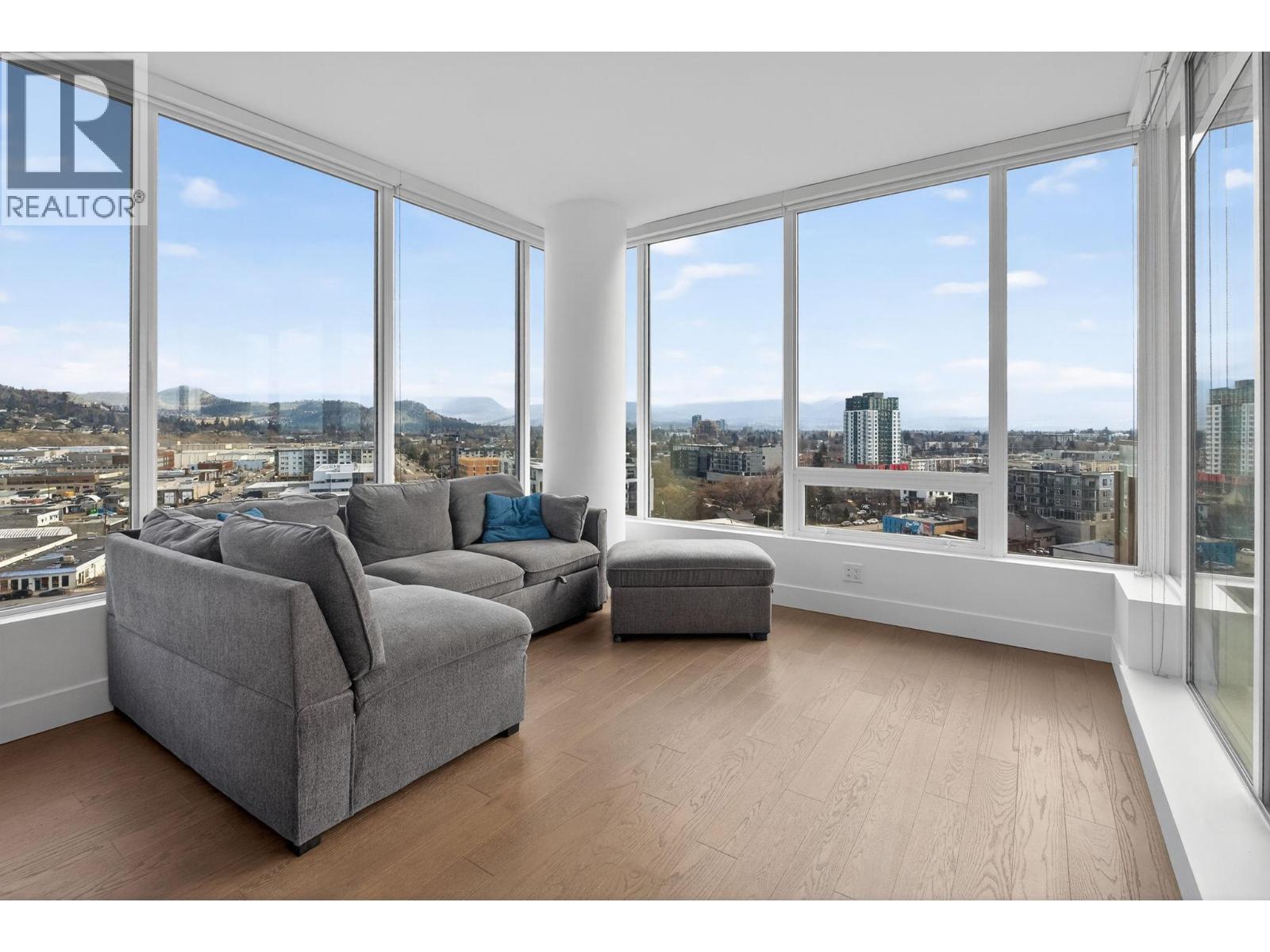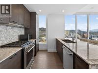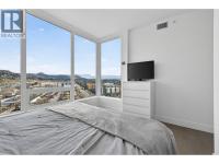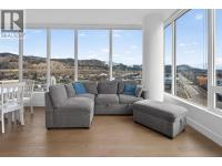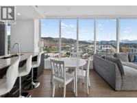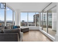 Downtown Kelowna. With a view to the east mountains and south/west overlooking Prospera Arena, the City lights, lake and bridge. The deck offers you a front row seat to view all the activities below you. Floor to ceiling windows flood the space with natural lights. Open concept is anchored by a modern kitchen, featuring quartz countertops, full height custom cabinetry and stainless appliances. 2 bedroom, 2 bathroom corner unit. Primary bedroom has 3 piece tiled walk-in shower and a spacious walk-in closet. Room off entry adds practical storage or office. Ownership gives you access to 2 pools, hot tubs, fitness center, yoga, steam room, pickleball courts, car wash, & Pilates studio, outdoor BBQ, fire pits, guest suites. Front door concierge service. Separate storage locker on floor 2. Parking is on 1st floor, accommodates a large truck. Downtown living doesn't get any better than this. Leave your car and walk to the restaurants, cultural districts, boardwalk, and the beaches on Lake Okanagan Lake. (id:6769)