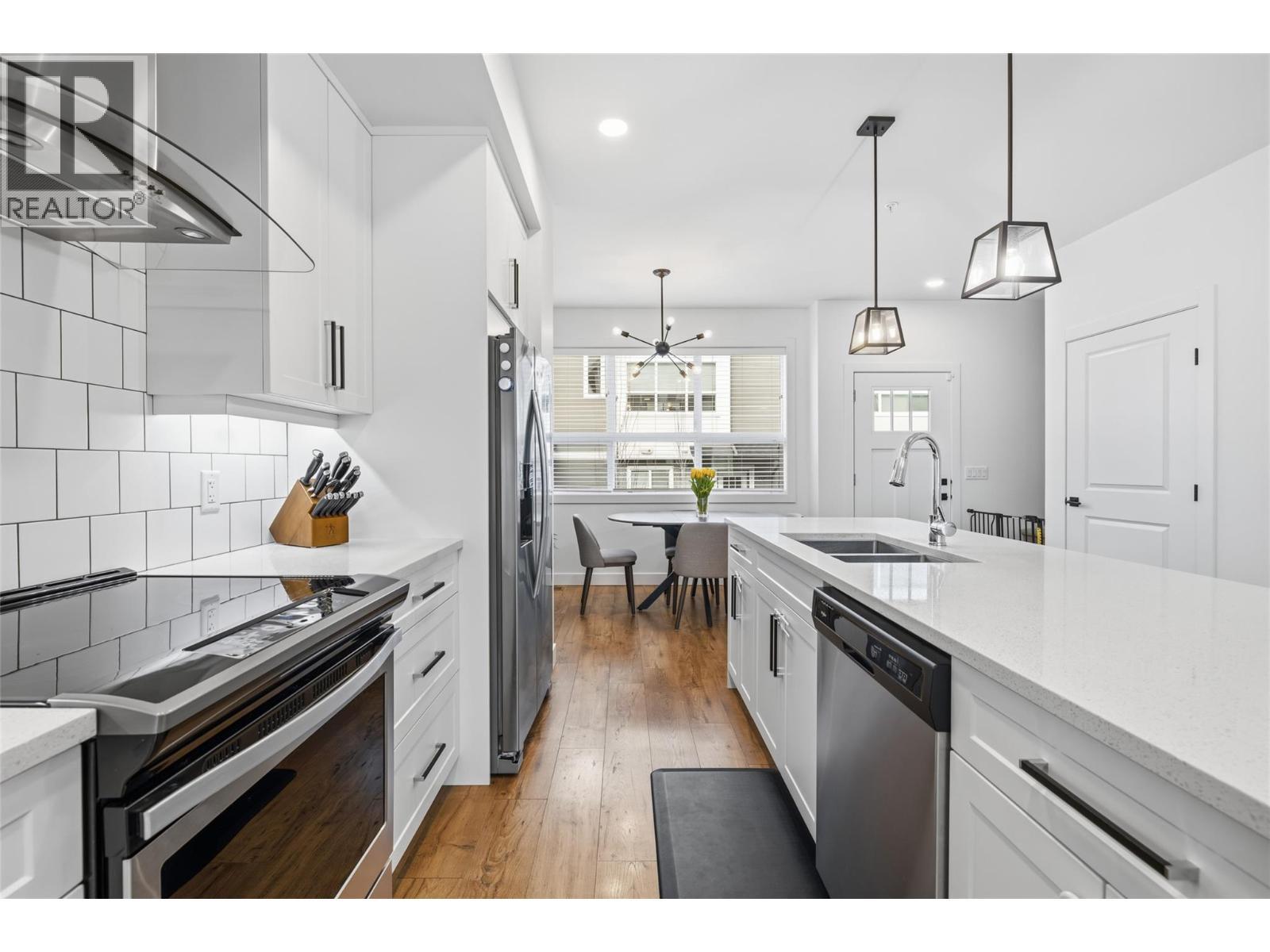 This exceptional end unit townhome shows AAA and is sure to impress you both inside and outside. ""Checking all the boxes"", it includes a PRIVATE YARD (pet friendly), a DOUBLE GARAGE, an amenity rich location and a PERFECT FLOORPLAN. Inside you'll love the open concept design, the numerous windows and the classy finishings. The stunning kitchen offers lots of cabinet + counter space, chic cabinetry, quartz counters and stainless steel appliances, plus beautiful hardware and backsplash. A great dining area compliments the home and an oversize living room provides an ideal space for relaxing after a busy day. Upstairs are 3 spacious bedrooms + 2 washrooms. The primary bedroom has a walk in closet and its own 4 piece ensuite washroom, which includes a double vanity with quartz countertop. For those working from home while still wanting room for family or guests, the additional rooms and bathroom create an ideal living space. Also included on the upper level is the laundry, conveniently close to the bedrooms. The walkout lower/ basement level includes a large storage area (this could work well as a den as there's lot of natural daylight) and easy access to your double garage. Outside you'll fall in love with the picturesque fenced yard. The yard is set up with synthetic lawn on one side (great for kids) and a BIG OUTDOOR LIVING SPACE with room for all your outdoor furniture and a gas hookup to BBQ. Located close to shopping, recreation (Pelmewash Parkway) and public transit. (id:6769)