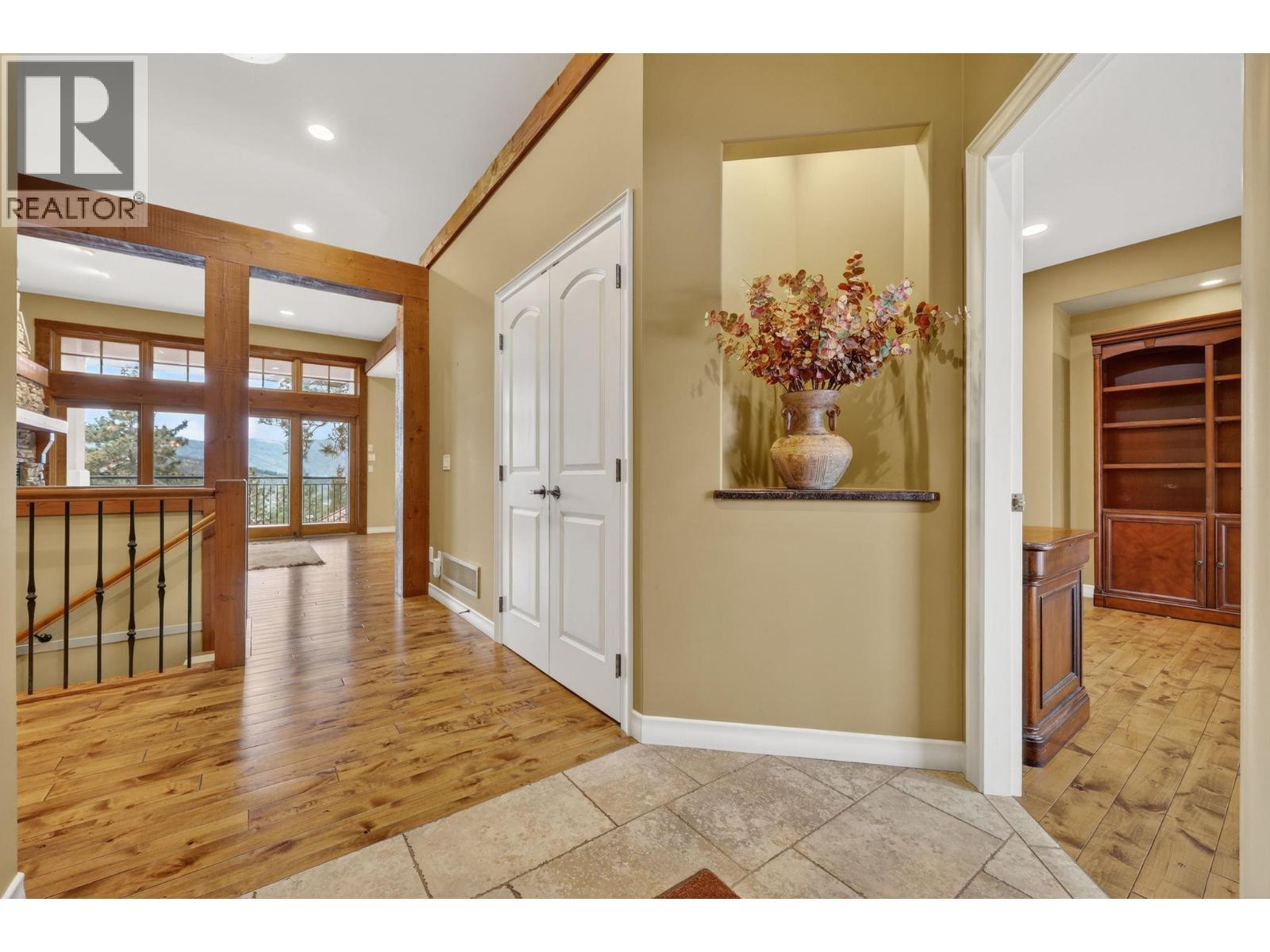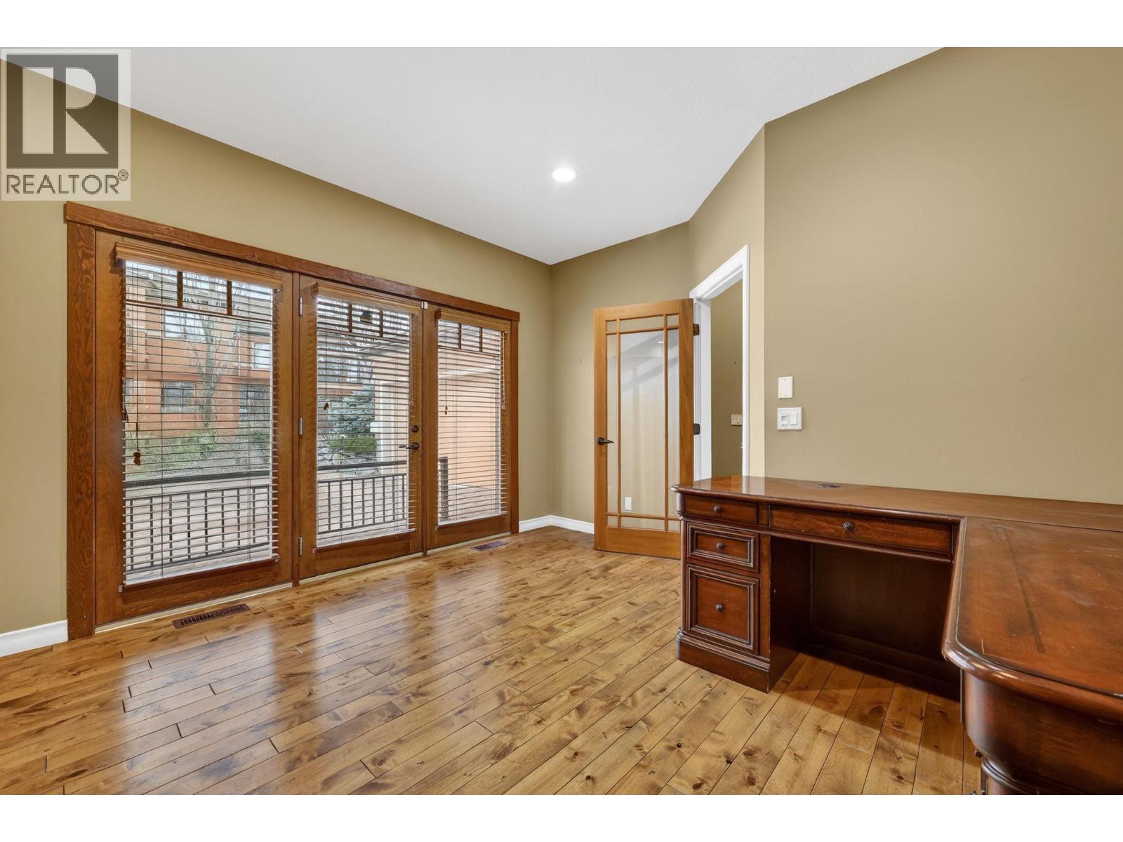 Beautiful views from this luxury executive duplex-style townhouse in one of Kelowna’s most sought-after locations just minutes to UBCO, Aberdeen Hall, hotels, restuarants, shops and Kelowna International Airport. Enjoy an exceptional golf-course community setting with two championship courses: Quail Ridge and The Bear. This quiet, exclusive 22-unit strata features a beautiful entrance water feature and meticulously maintained landscaping. Inside, you will find 3 bedrooms and 2.5 bathrooms. The main level offers wood flooring, granite countertops, wood windows and doors, and a stone-finished gas fireplace. Primary bedroom on the main with a luxurious ensuite and enormous walk-in closet and direct access to the sundeck shared with the great room. Thoughtful upgrades include geothermal heating/cooling, a dual-fuel (gas/electric) range, electric awning on the sundeck and in-floor heating in the primary ensuite. The walk-out basement provides excellent flexibility, with wiring in place for a hot tub on the covered patio and great entertaining space with a wet bar, and roughed in media room. (id:6769)