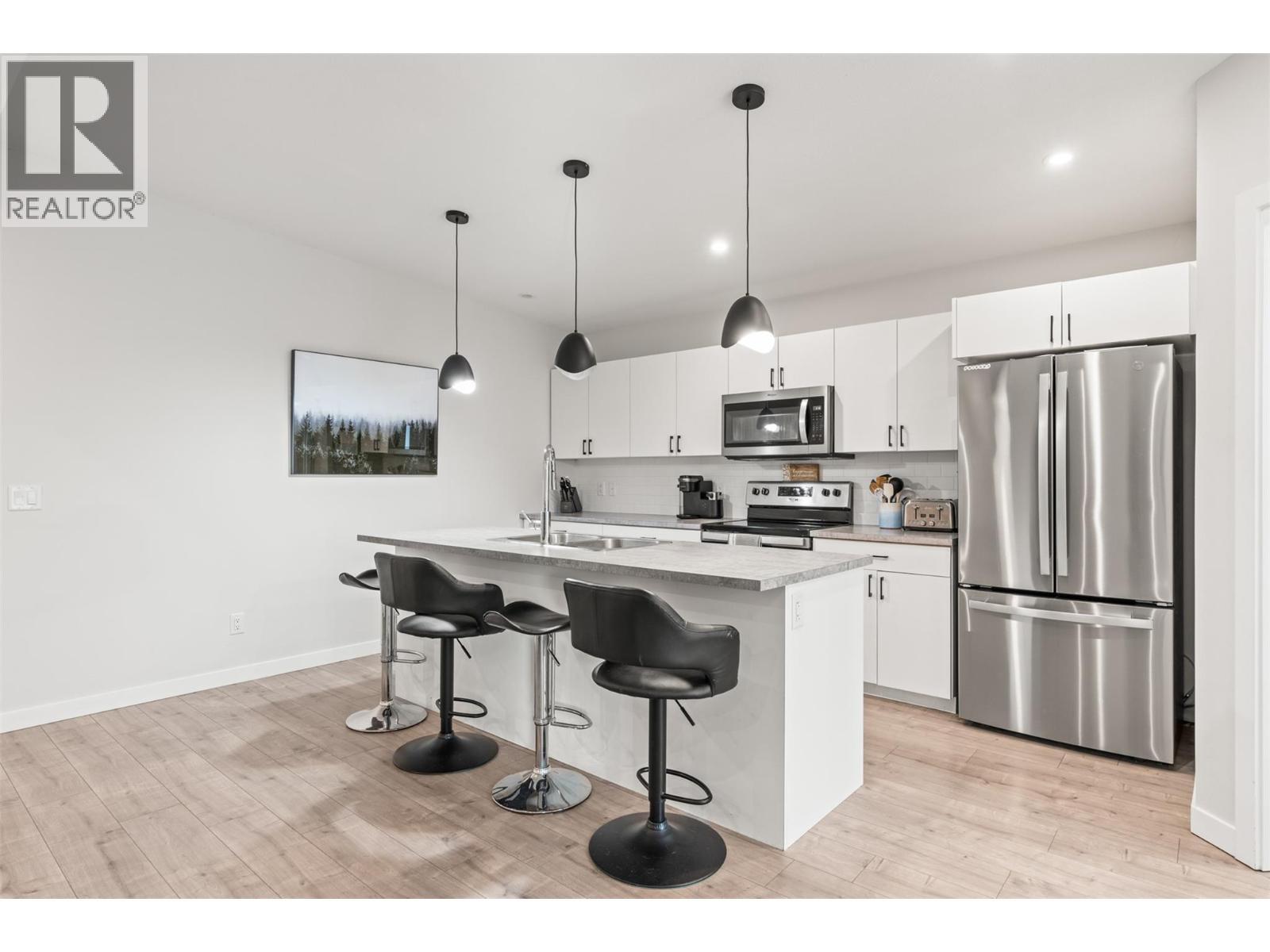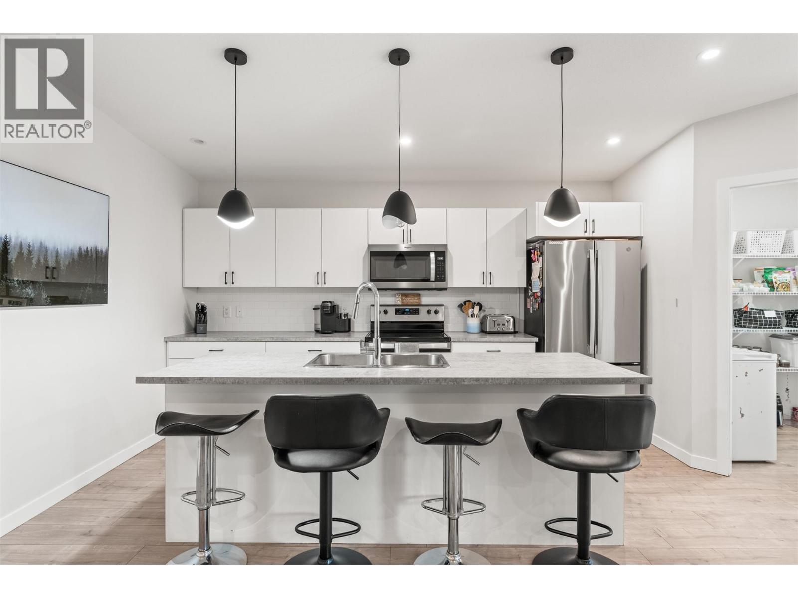 All the benefits of new without the GST and wait time, this manufactured home in a well-connected community of Deer Meadows is the epitome of “move-in ready.” A short distance away from Britannia Brewing Company and the renowned Rail Trail, the three-bedroom and two bathroom property is ideal for the outdoor enthusiast, with both Kalamalka and Wood Lake a short distance away. Built by Woodland Crafted Homes, the Monarch home boasts a unique exterior and modern interior layout. Inside, an open concept kitchen with contemporary cabinetry, a spacious pantry, stainless steel appliances including new fridge, and a large center island. Large windows drench the adjacent living and dining areas in natural light, and gleaming laminate flooring spans throughout. The spacious primary bedroom suite comes complete with a private full ensuite bathroom and walk-in closet, and two additional bedrooms share the full hall bathroom. The laundry room has been upgraded with the installation of a brand-new high-efficiency washer and dryer. As you venture outdoors, a landscaped backyard has undergone upgraded enhancements. The addition of an irrigation system ensures lush greenery and vibrant flowers with low maintenance. The well-crafted rock work creates a serene atmosphere where you can unwind and enjoy the outdoors. Lastly, with a 50lbs pet-size restriction, most of your furry friends are welcome. Pad fee is $575 a month + GST. (id:6769)
