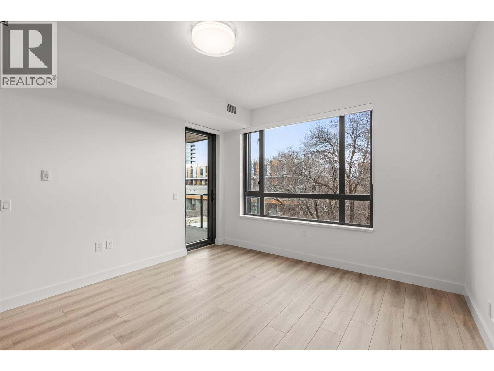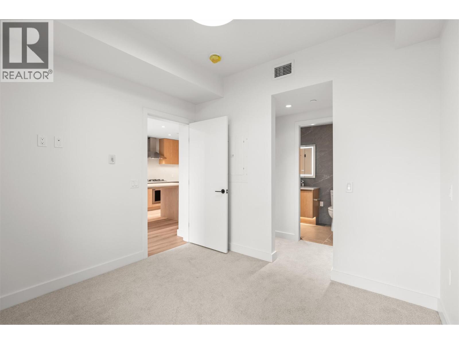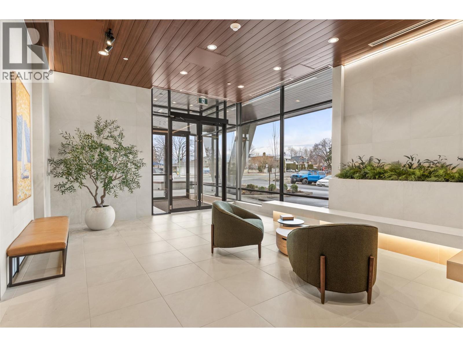 Presenting ALMA, built by Mission Group. This luminous, 3rd floor east-facing 1-bed, 1-bath residence welcomes gorgeous morning sun, offering 540 sqft of interior space plus a 100 sqft terrace, effortlessly blending purposeful design with upscale finishes in the heart of the Lower Mission. The impressive kitchen showcases streamlined flat-panel wood-grain cabinetry, a bold quartz waterfall dining island, and premium stainless-steel appliances. The open-concept plan is ideal for daily living and seamless entertaining, elevated by oversized windows that bathe the home in natural light, durable laminate flooring throughout the main living areas, and soft woven broadloom carpeting in the bedroom. The primary suite features a walk-through closet, while the ensuite is appointed with large-format tile, a rainfall shower, custom-tiled niche, and gentle ambient lighting that creates a spa-like retreat. Added features include roller shades on every window, individually controlled heating and cooling, and one secure underground parking stall. Residents enjoy access to amenities including an 8,000 sqft lakeview terrace with firepits, BBQs, and community gardens, along with a fully equipped fitness centre, dog wash, and bike maintenance station. With a walk score of 93, you’re moments from transit, KGH, the shops and dining of vibrant Pandosy Village, and the shoreline of Okanagan Lake. Sqft and room sizes are approximate and may vary. This newly constructed home is move-in ready. (id:6769)