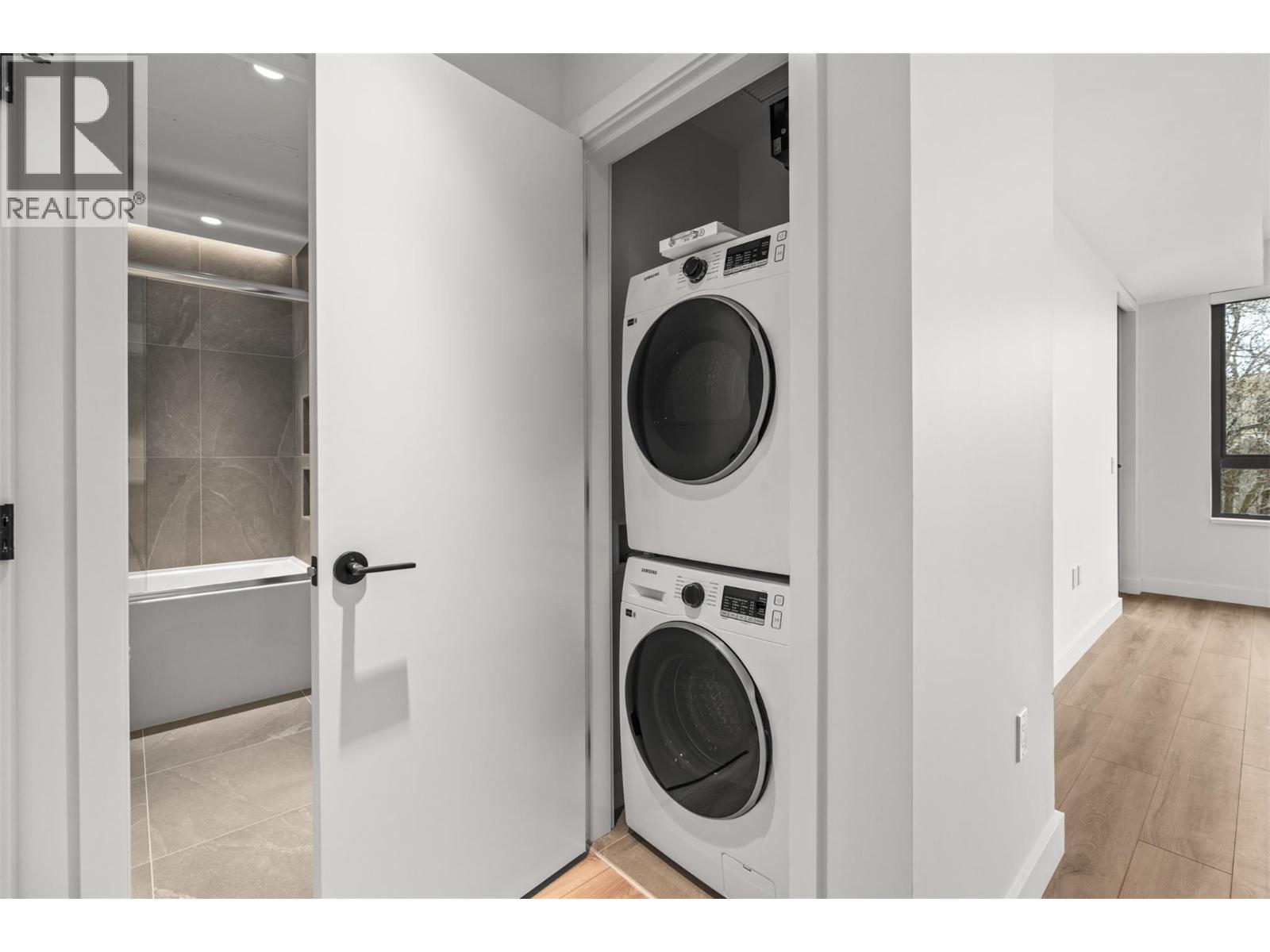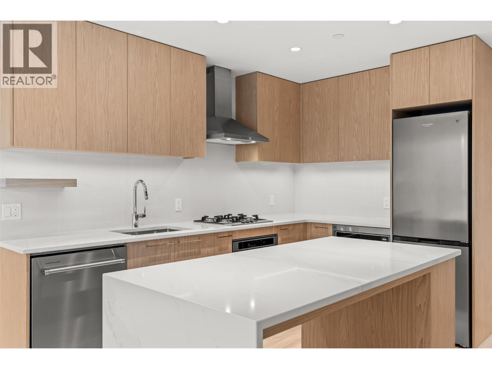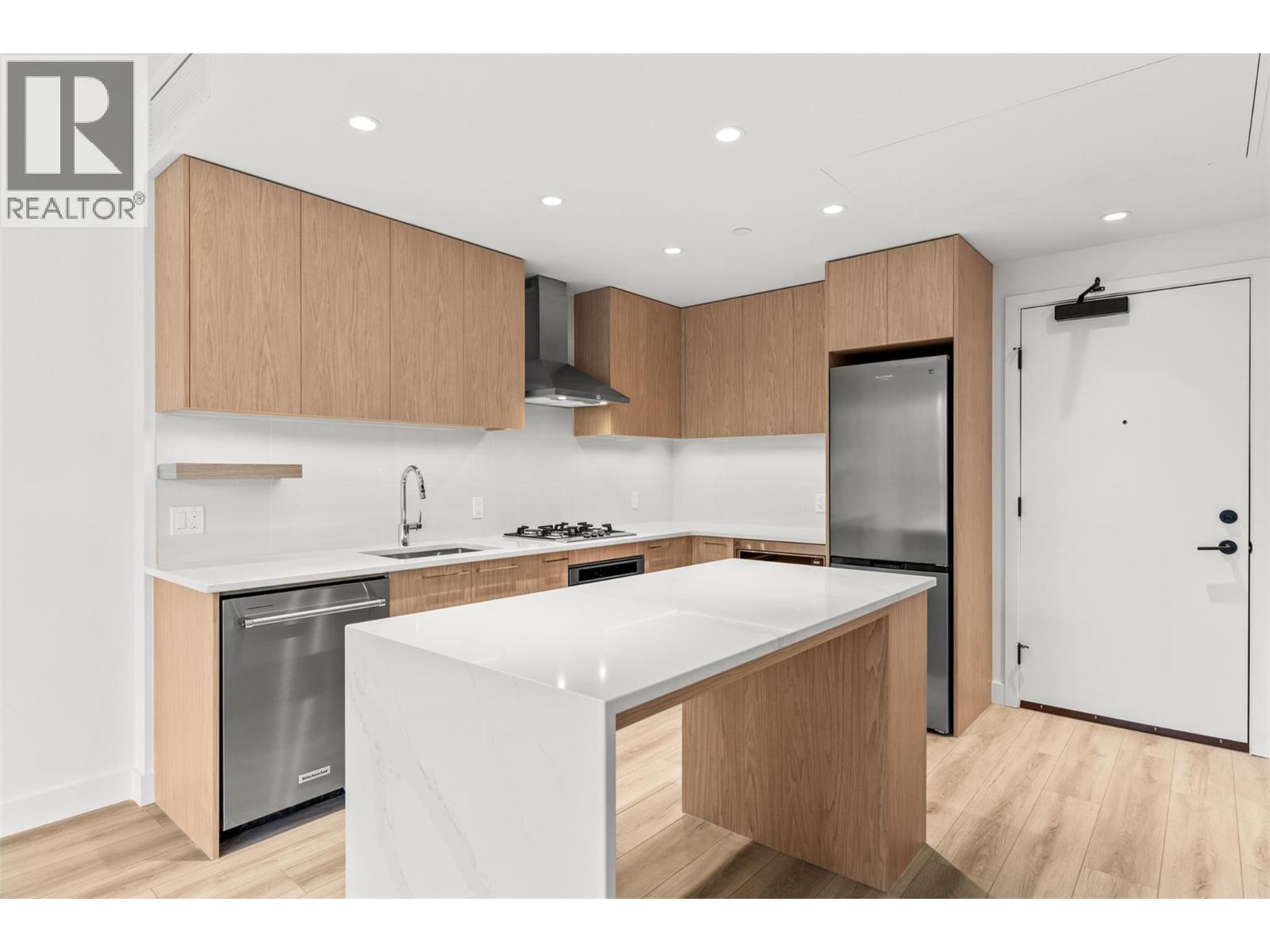 Presenting ALMA, built by Mission Group. This luminous, 3rd floor east-facing 1-bed, 1-bath residence welcomes gorgeous morning sun, offering 540 sqft of interior space plus a 100 sqft terrace, effortlessly blending purposeful design with upscale finishes in the heart of the Lower Mission. The impressive kitchen showcases streamlined flat-panel wood-grain cabinetry, a bold quartz waterfall dining island, and premium stainless-steel appliances. The open-concept plan is ideal for daily living and seamless entertaining, elevated by oversized windows that bathe the home in natural light, durable laminate flooring throughout the main living areas, and soft woven broadloom carpeting in the bedroom. The primary suite features a walk-through closet, while the ensuite is appointed with large-format tile, a rainfall shower, custom-tiled niche, and gentle ambient lighting that creates a spa-like retreat. Added features include roller shades on every window, individually controlled heating and cooling, and one secure underground parking stall. Residents enjoy access to amenities including an 8,000 sqft lakeview terrace with firepits, BBQs, and community gardens, along with a fully equipped fitness centre, dog wash, and bike maintenance station. With a walk score of 93, you’re moments from transit, KGH, the shops and dining of vibrant Pandosy Village, and the shoreline of Okanagan Lake. Sqft and room sizes are approximate and may vary. This newly constructed home is move-in ready. (id:6769)