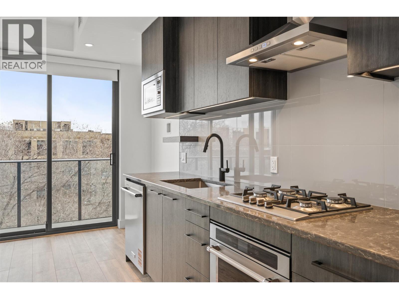 Step into ALMA by Mission Group--this smartly crafted 4th floor studio residence offers approximately 312 sq ft of sun-filled, highly functional living in the heart of Kelowna’s coveted Lower Mission. Designed for effortless Okanagan living, this home blends style and efficiency with ease. The contemporary kitchen showcases flat-panel wood-grain cabinetry, sleek quartz counters, porcelain tile backsplash, and a premium stainless steel appliance package, all accented by under-cabinet LED lighting. Expansive windows flood the open layout with natural light, while durable laminate flooring and modern roller shades add a polished finish. The spa-inspired bathroom delivers everyday luxury with large-format tile, a rainfall shower, custom niche, and soft ambient lighting. Comfort meets convenience with in-suite laundry and individually controlled heating and cooling for year-round climate control. Residents enjoy access to exceptional amenities, including an 8,000 sq ft lakeview terrace complete with firepits, BBQ areas, and community gardens, plus a fully equipped fitness centre, dog wash station, and bike maintenance hub. With an outstanding walk score of 93, you’re just steps to transit, Kelowna General Hospital, the boutiques and dining of vibrant Pandosy Village, and the shores of Okanagan Lake. Square footage and room dimensions are approximate. Photos may represent a similar home and layout. Newly constructed and move-in ready! (id:6769)