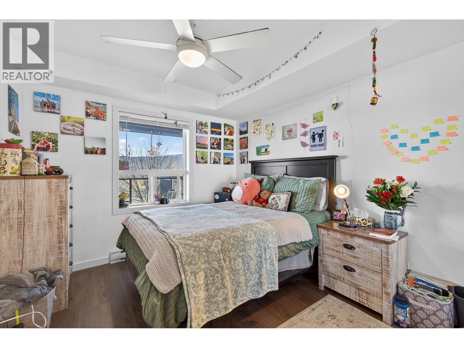 Located in the highly desirable U2 building on Academy Way, just a short downhill walk to the University of British Columbia Okanagan campus, this bright and welcoming 3 bedroom, 3 bathroom condo offers a thoughtful layout ideal for students, roommates, or investors. Each bedroom features its own private ensuite, providing comfort and privacy while making this an excellent roommate configuration. The open concept living space is warm and inviting, with large windows that capture beautiful mountain views and allow natural light to fill the home. The modern kitchen offers stainless steel appliances, generous cabinetry, and a functional island with breakfast bar seating, perfect for casual meals or gathering with friends. One of the standout features of this home is the exceptionally large covered patio measuring approximately 21'9"" x 6'10"" which is a rare bonus in condo living and an ideal space to relax outdoors while enjoying the surrounding mountain scenery. Being sold fully furnished and turn-key, the unit is ready for immediate occupancy or rental. Additional conveniences include in-suite laundry and one parking stall. Situated minutes from UBCO campus, transit, the airport, and everyday amenities, this property presents an excellent opportunity for investors, parents purchasing for students, or buyers seeking low-maintenance living in one of Kelowna’s most convenient university locations. (id:6769)