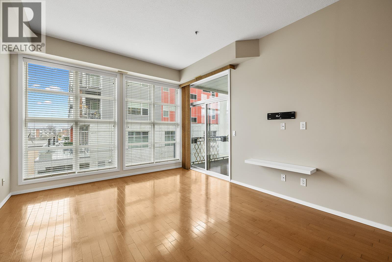 Experience the vibrant heart of Kelowna’s Cultural District in this bright, two-bedroom condo at Ellis Court. Unbeatable location is everything: step outside your door and you are moments away from Prospera Place, Kelowna Community Theatre, YMCA, local breweries, exceptional restaurants, unique shops and Safeway. The lake and beaches are just minutes away, offering the perfect urban-meets-nature lifestyle. The condo itself features an open floor plan enhanced by soaring 10-foot ceilings and huge windows, flooding the space with natural light. The living room boasts hardwood flooring and leads to an east-facing covered deck with a mountain view. The kitchen is complete with maple cabinetry, stainless steel appliances, and a raised eating bar. Building amenities include secure underground parking (with one assigned stall), central heat and air conditioning, in-unit laundry, a storage locker, and a sophisticated glass elevator. Ellis Court is also a pet-friendly building (with restrictions). This unit is vacant and ready for you to move in. (id:6769)